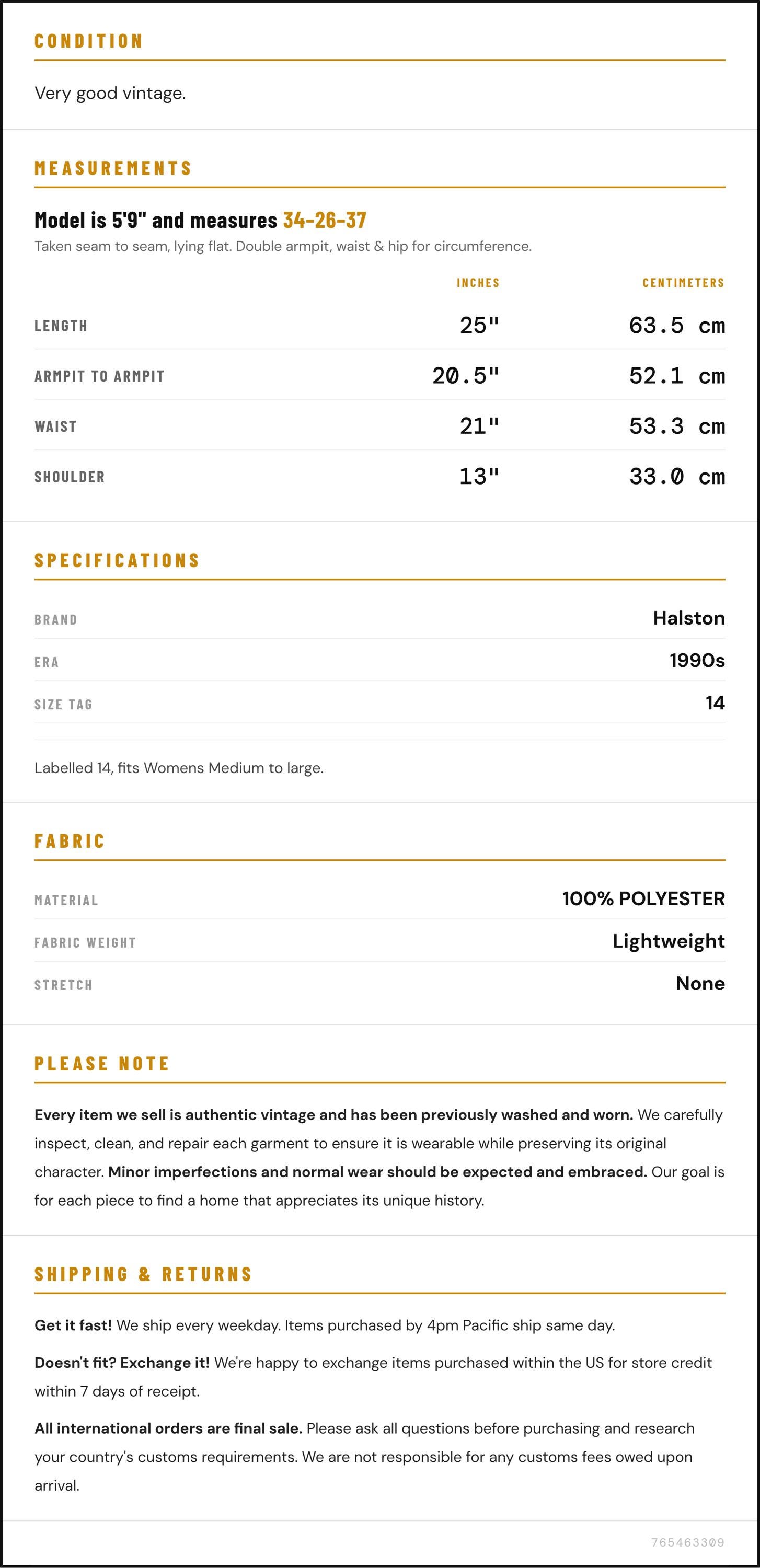 Measurements are taken laying flat and should be doubled where applicable. The "best fits" size is just an estimate, and vintage sizing can vary from modern sizing. Please use measurements to ensure proper fit. The best thing to do is measure a similar item of your own, and compare. When an item has stretch, we will list the unstretched dimensions with the stretched measurement afterwards.