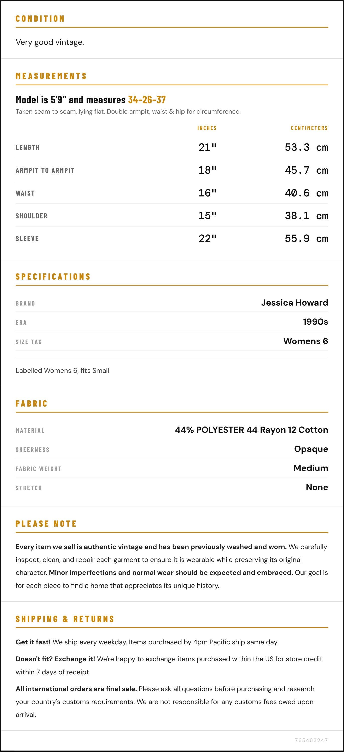 ✨ Please see measurements and condition below. Every garment we sell is authentic vintage and one-of-a-kind! You will receive the exact item photographed.