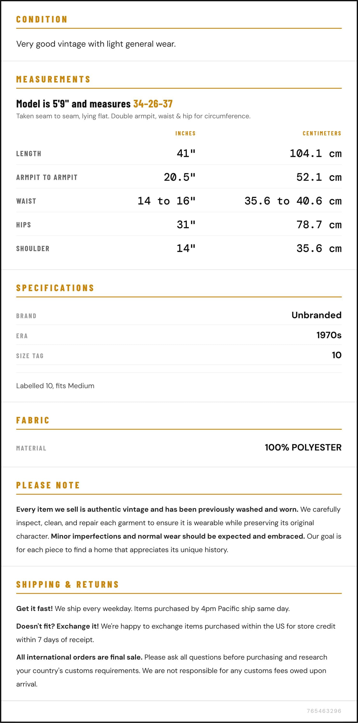Measurements are taken laying flat and should be doubled where applicable. The "best fits" size is just an estimate, and vintage sizing can vary from modern sizing. Please use measurements to ensure proper fit. The best thing to do is measure a similar item of your own, and compare. When an item has stretch, we will list the unstretched dimensions with the stretched measurement afterwards.