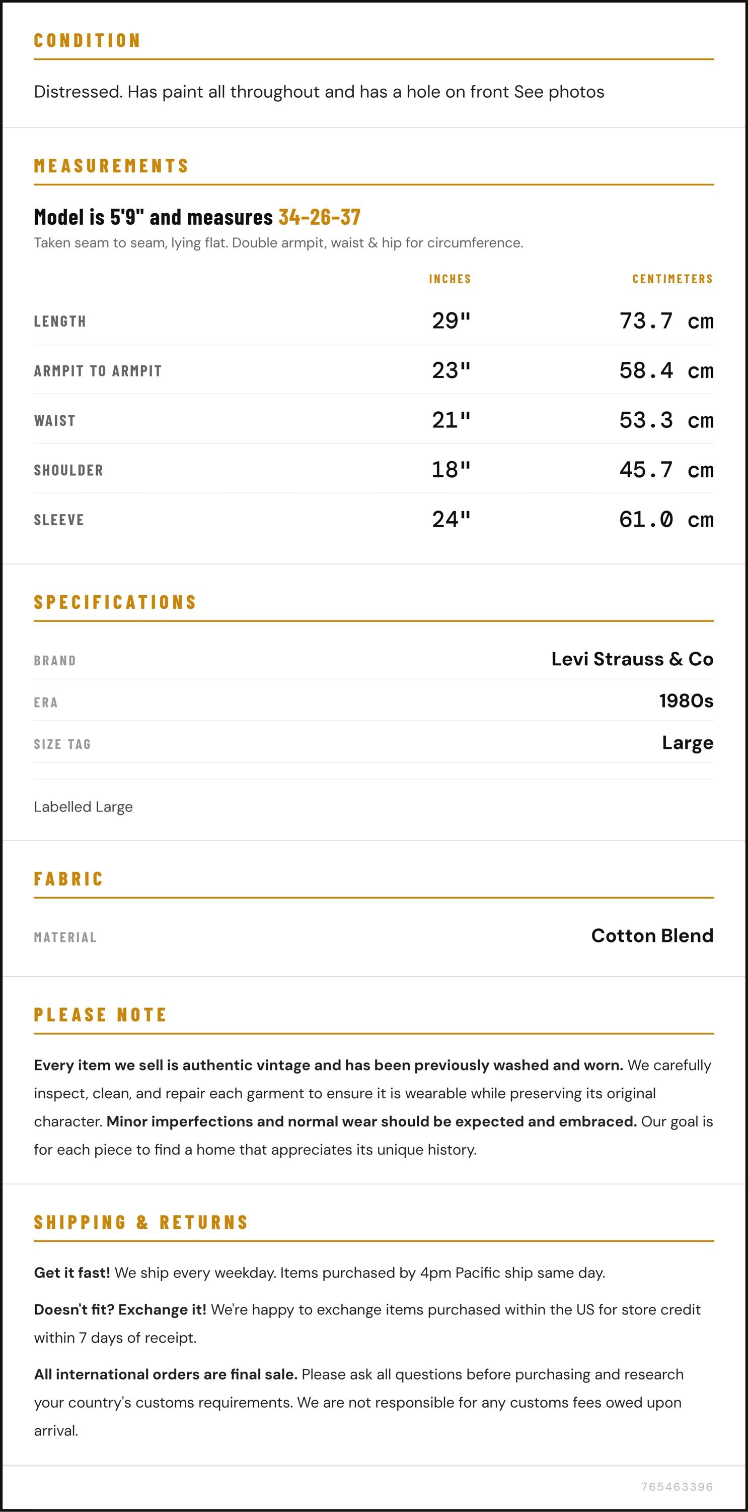 Vintage denim was usually made without any stretch, unlike modern jeans. Check the measurements to ensure proper fit, and remember to give yourself a little wiggle room in the waist and hips, depending on your preferred fit.