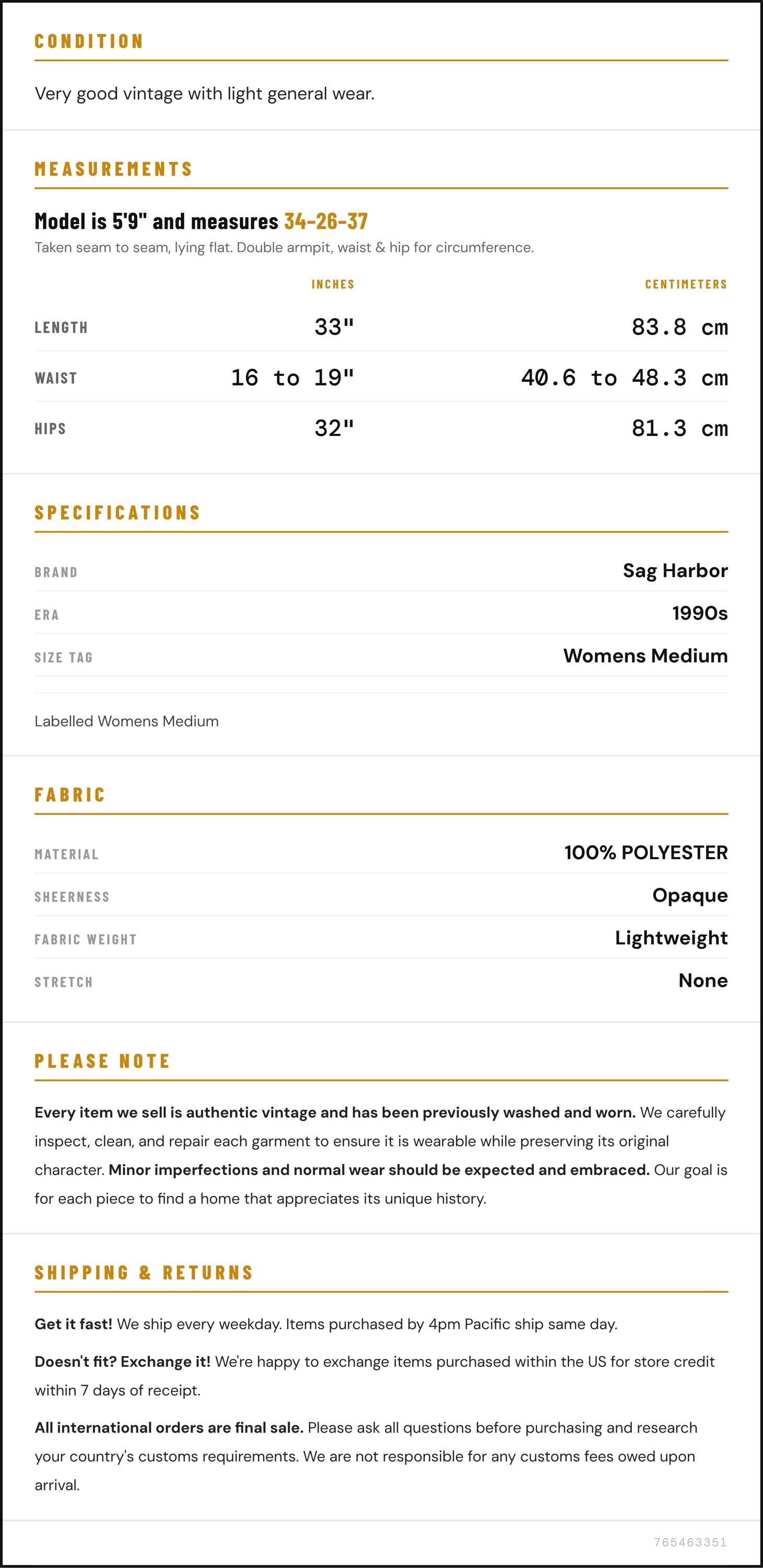 Hips: 32" / 81.3 cm