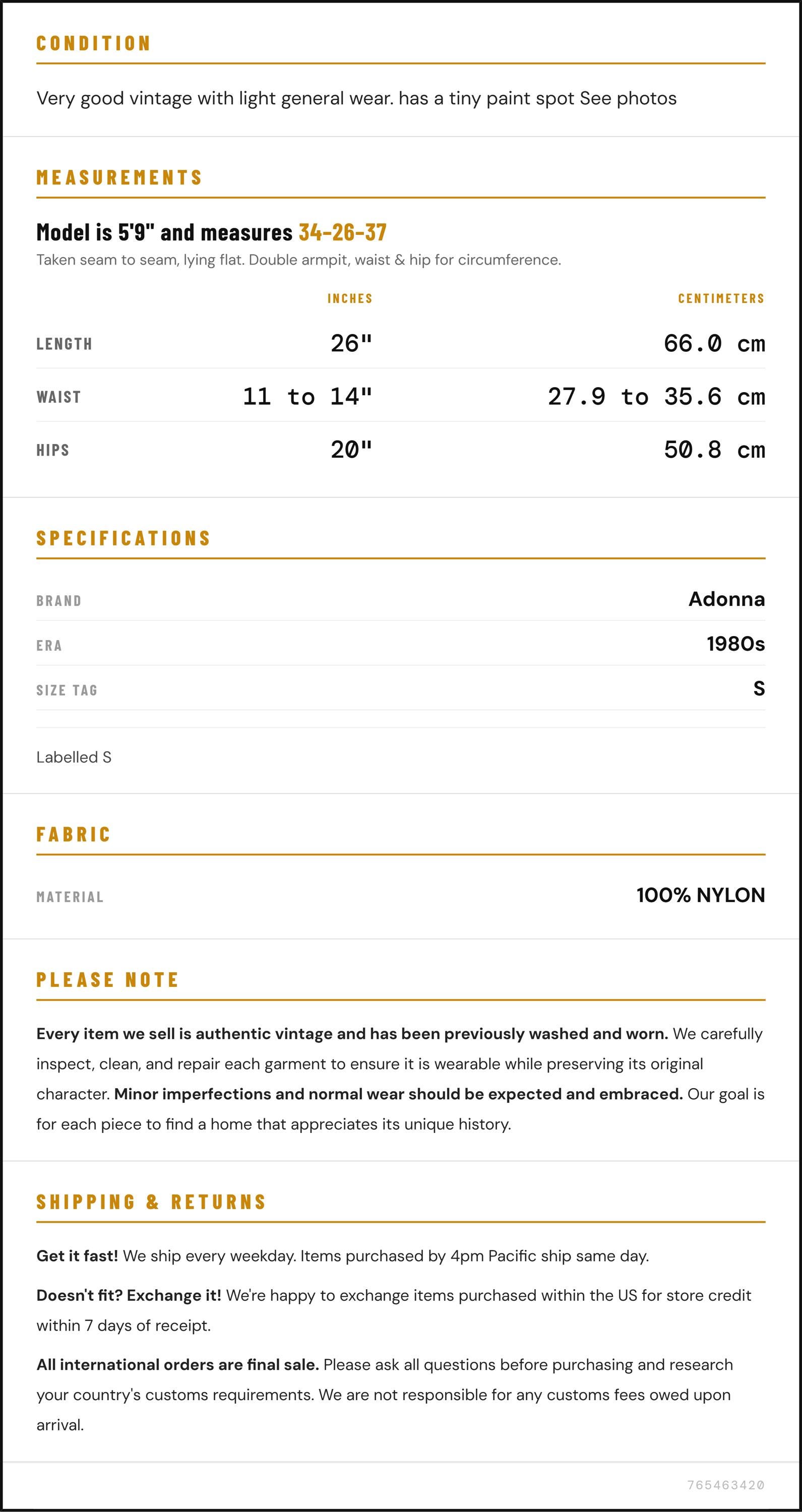 Vintage denim was usually made without any stretch, unlike modern jeans. Check the measurements to ensure proper fit, and remember to give yourself a little wiggle room in the waist and hips, depending on your preferred fit.