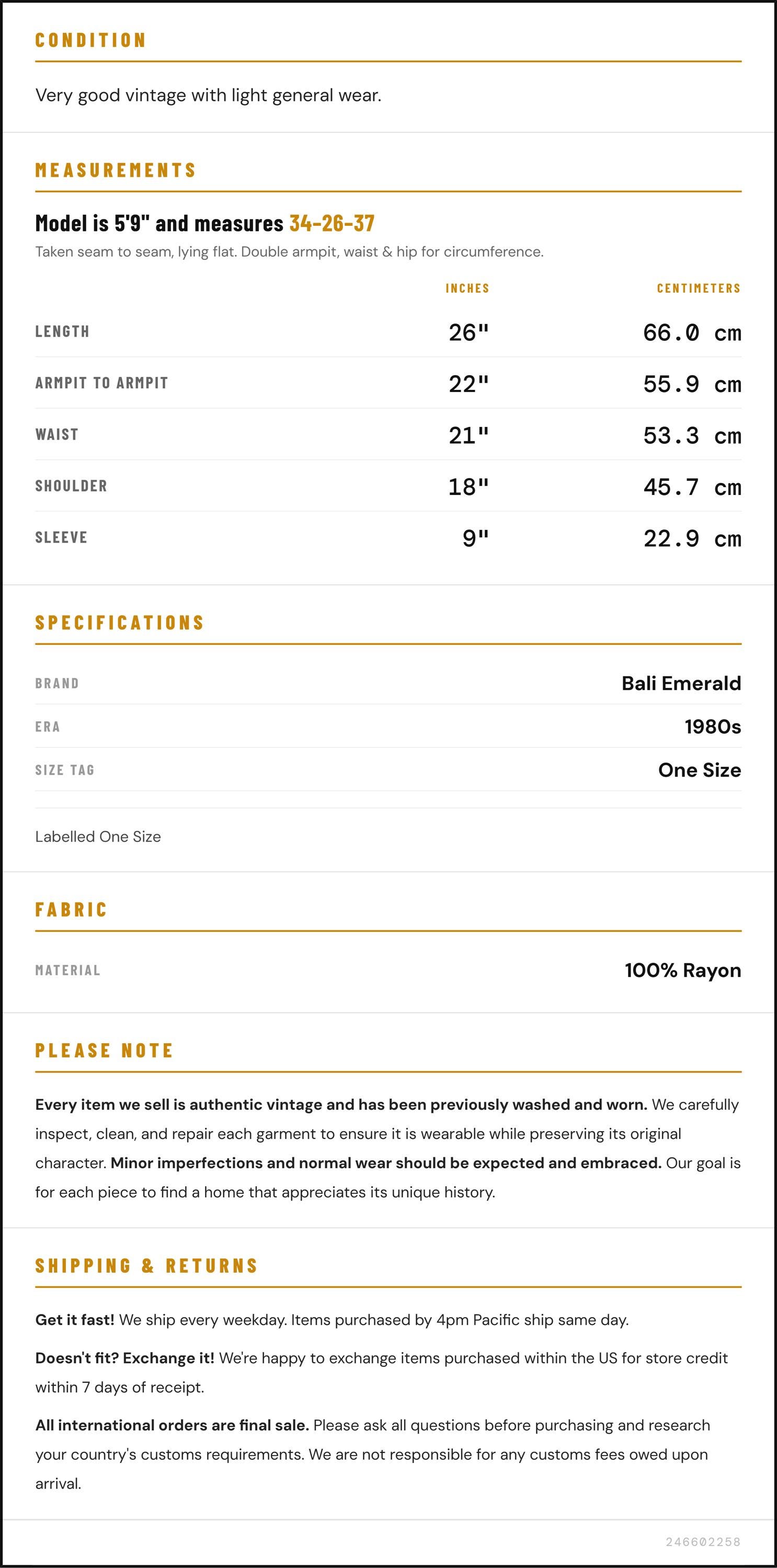 ✨ Please see measurements and condition below. Every garment we sell is authentic vintage and one-of-a-kind! You will receive the exact item photographed.