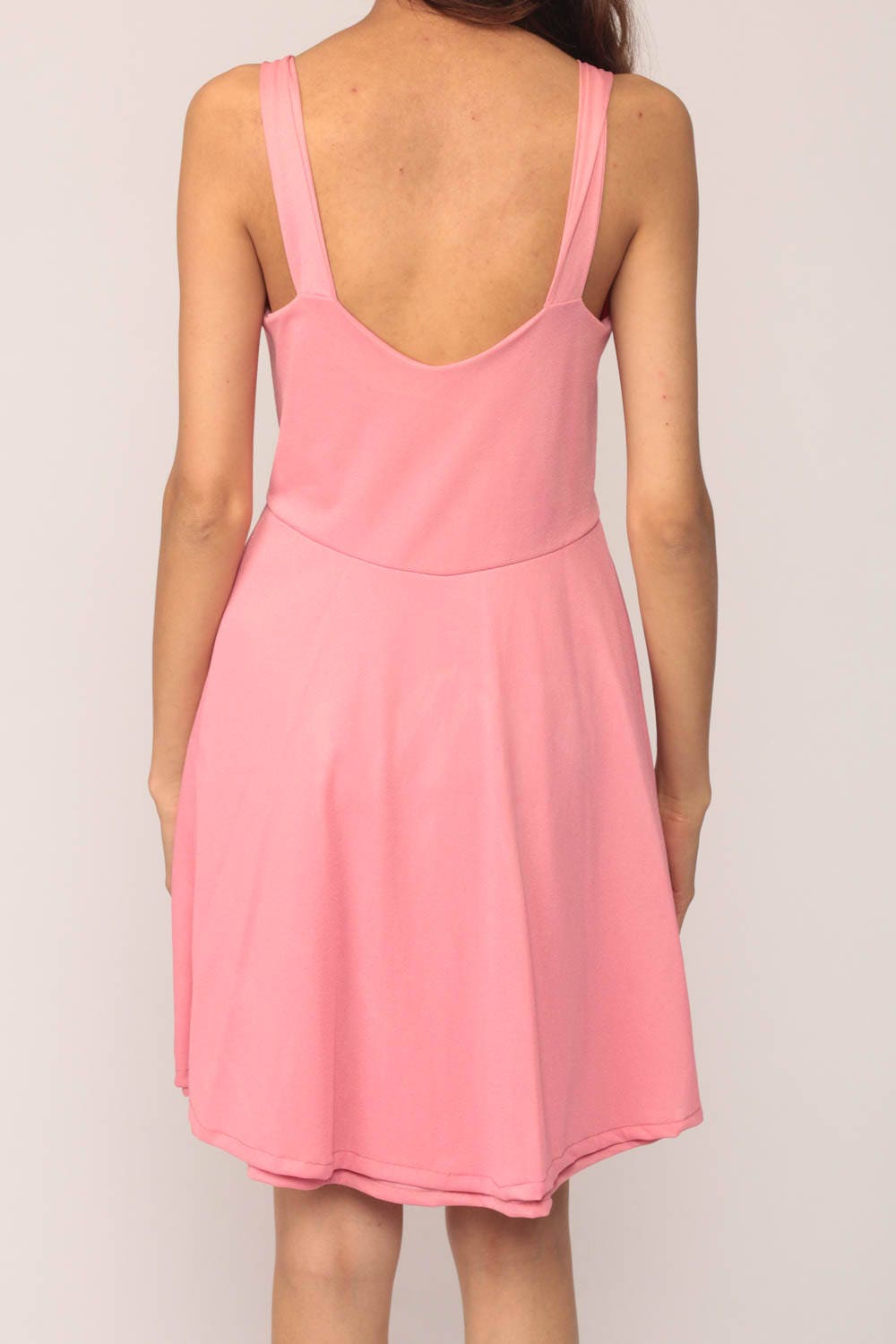Vintage 70s lingerie slip in pink with an empire waist and a plunging neckline. Mini length.
