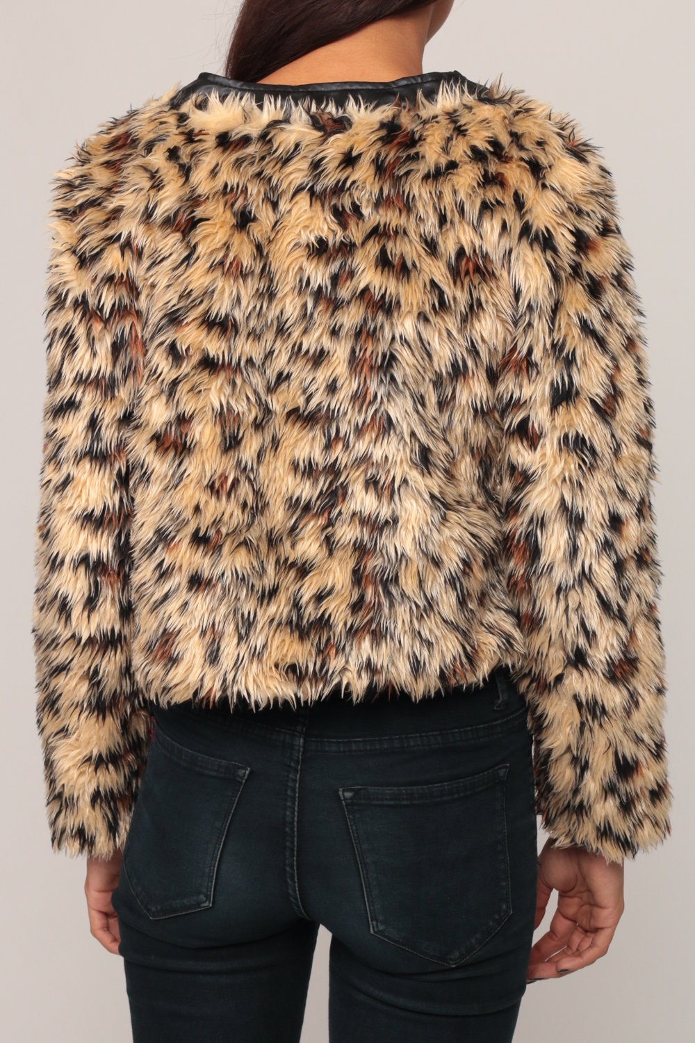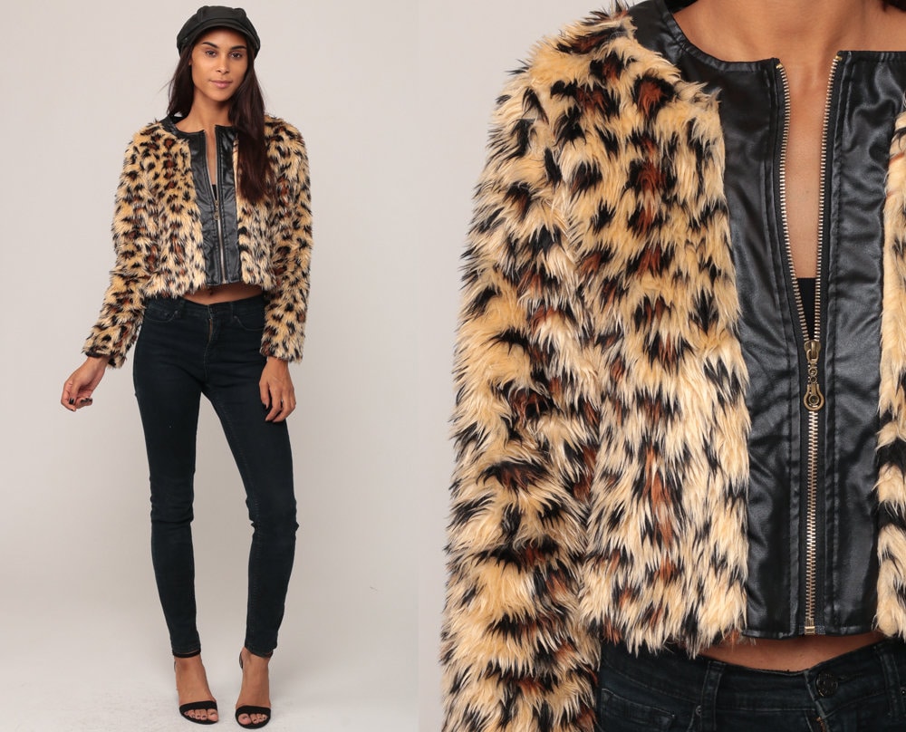 Vintage 90s coat in leopard print faux fur with a cropped fit.