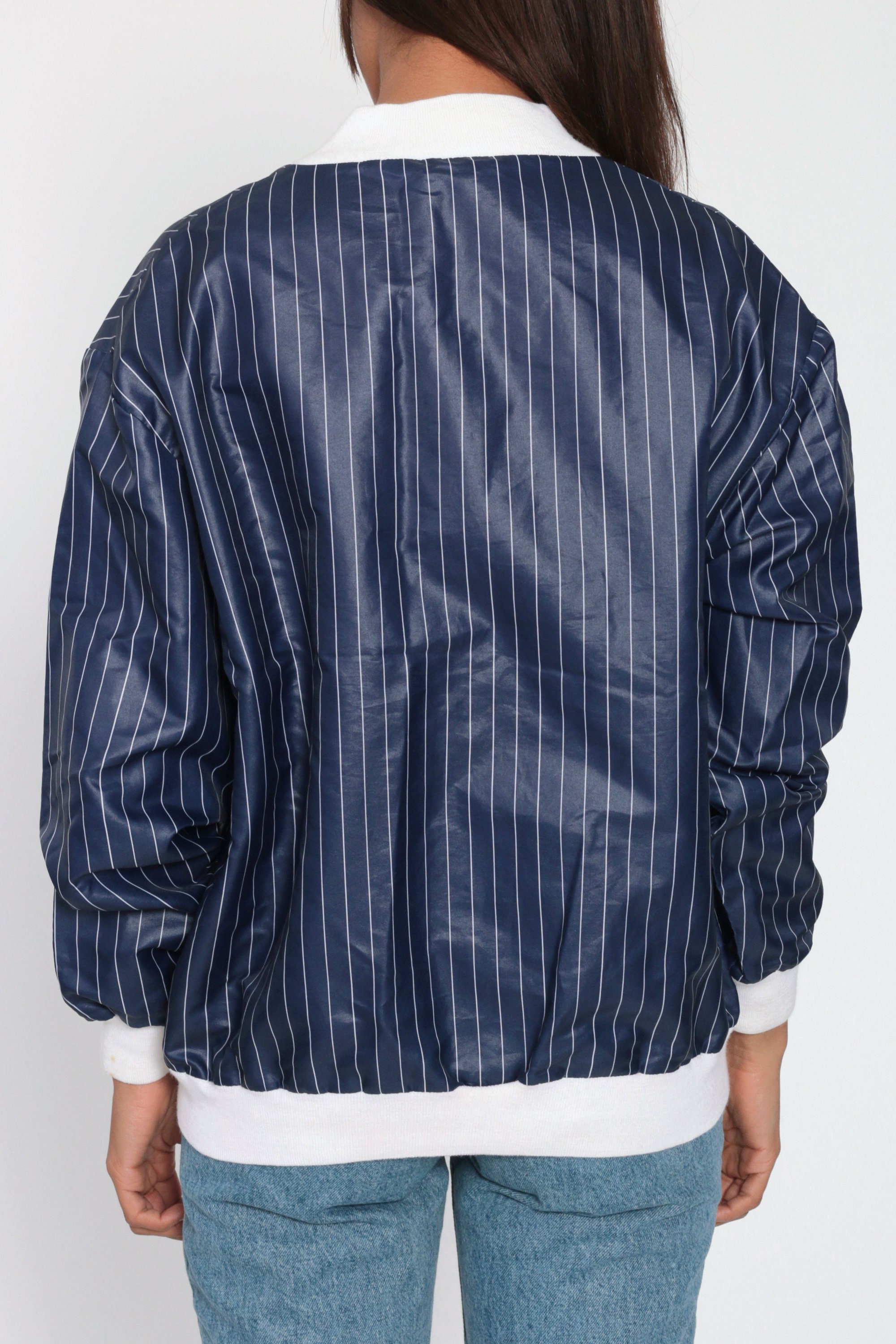 Vintage 80s bomber jacket by Pierre Cardin in blue with white stripes. Unisex.