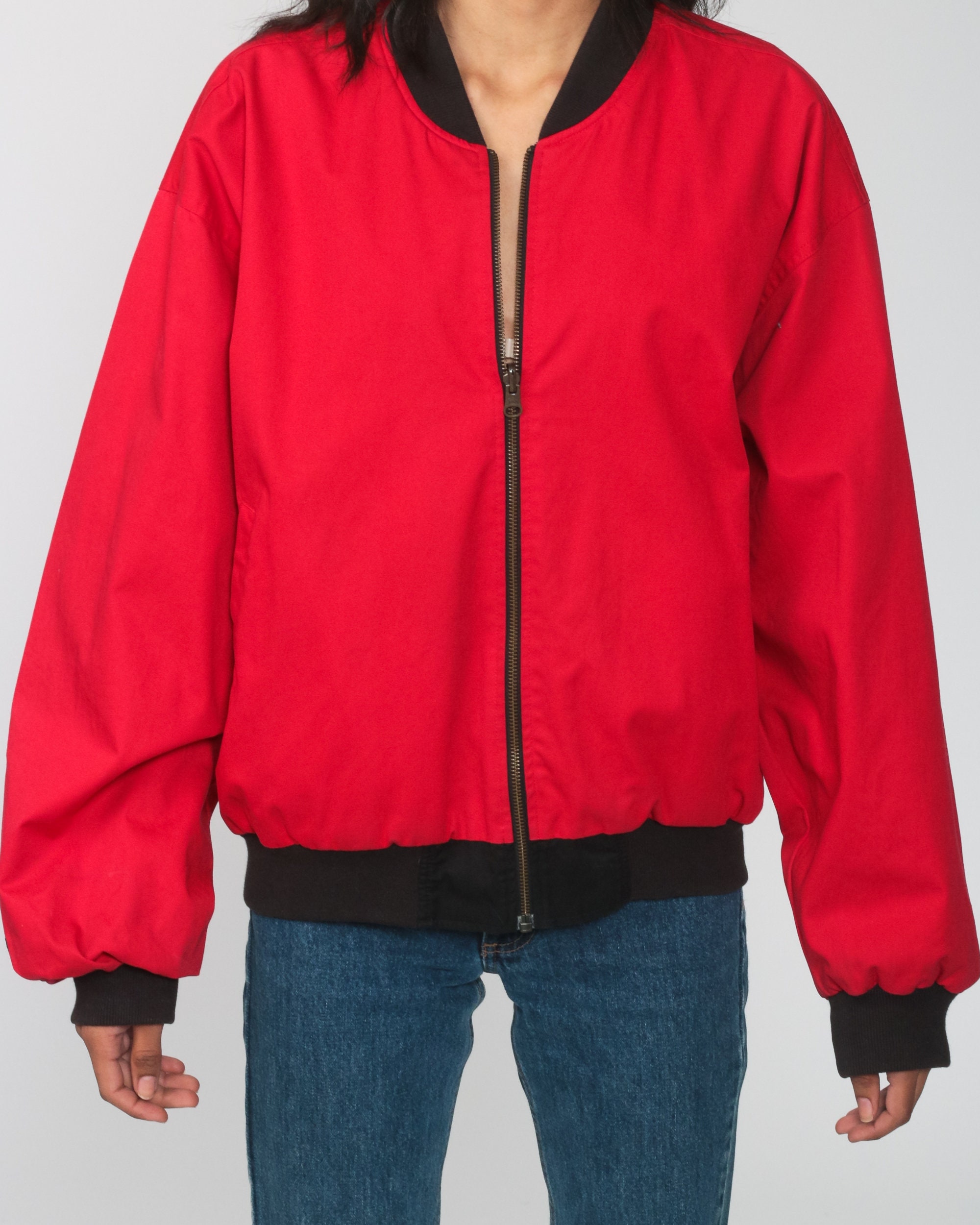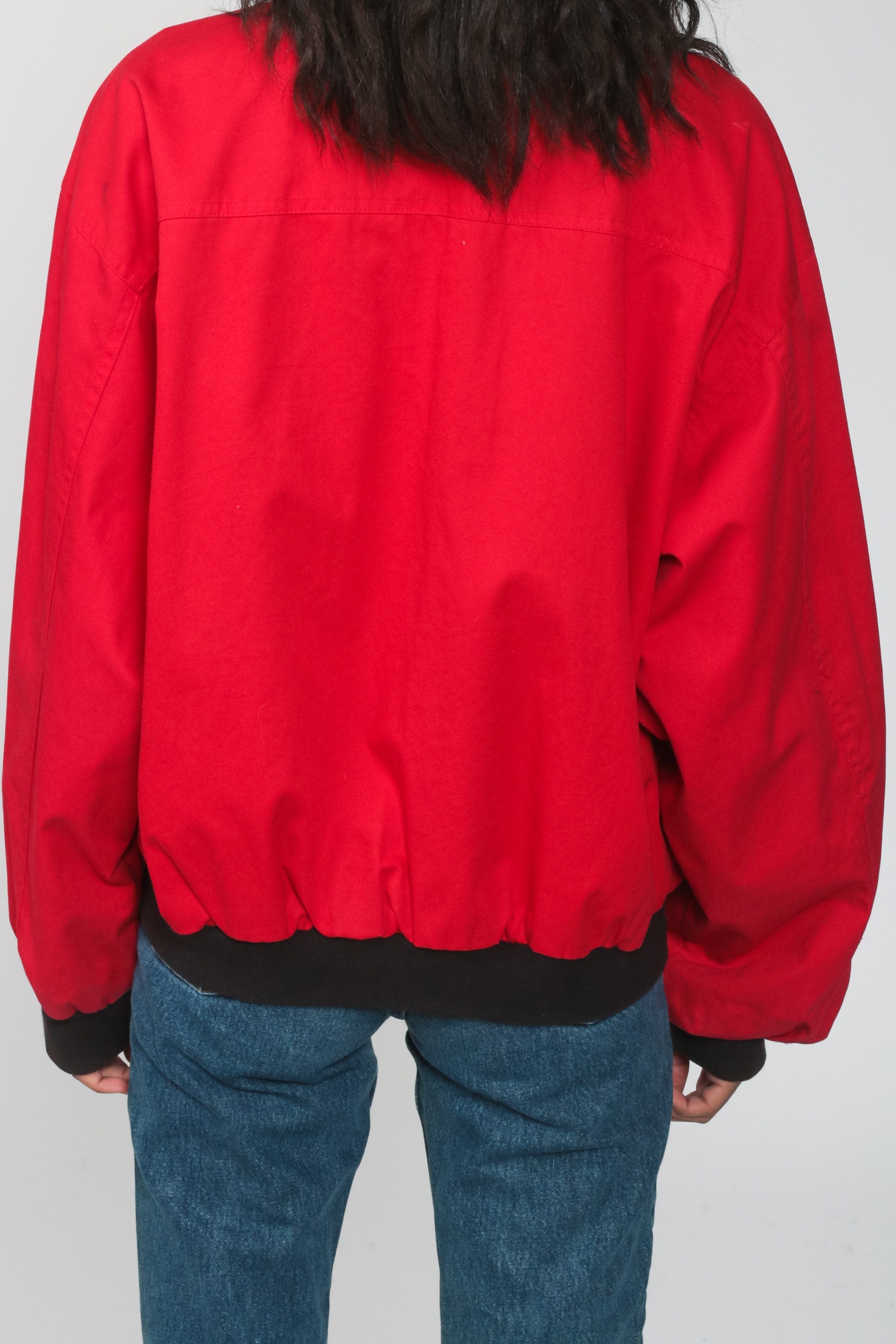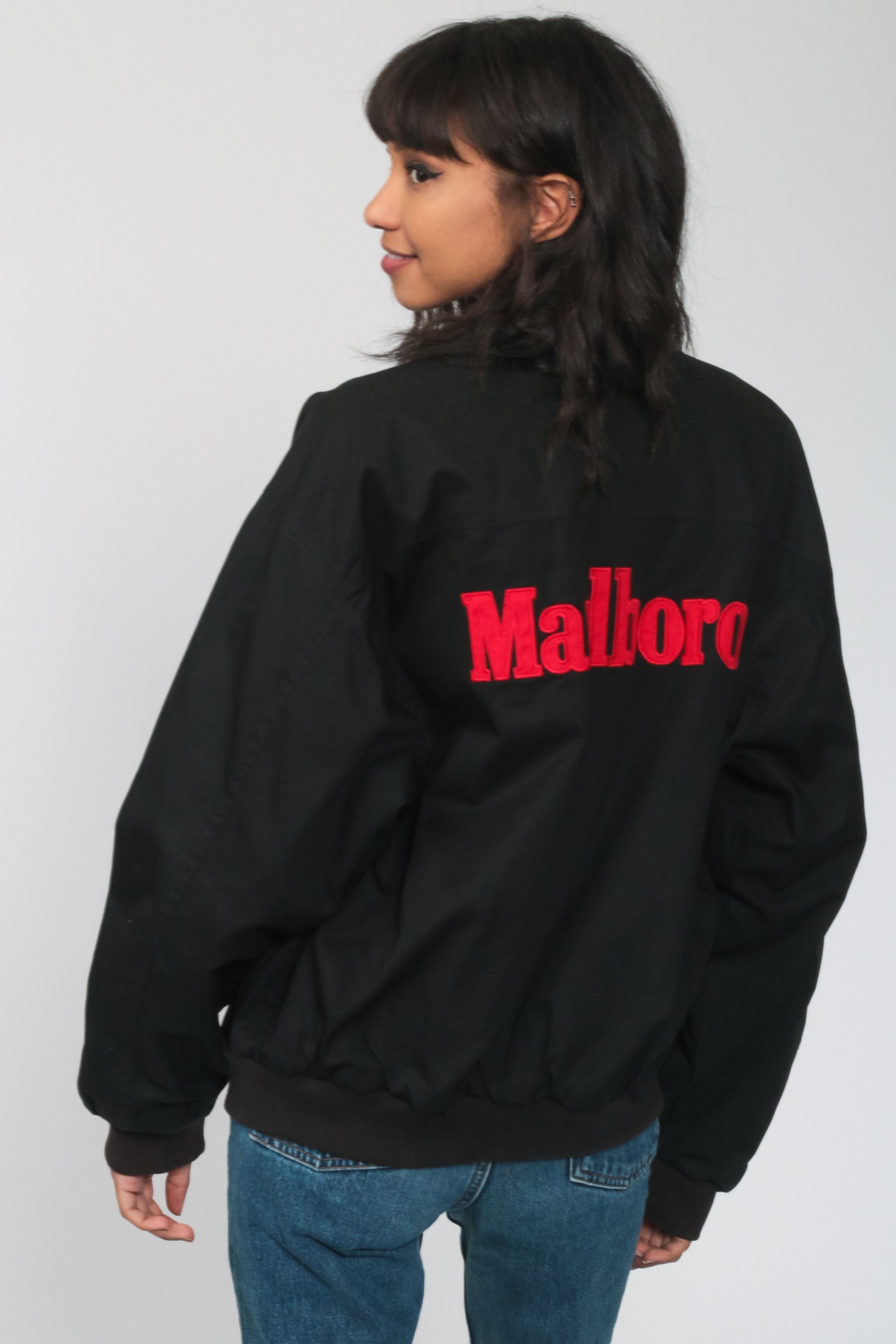 Vintage 90s reversible jacket by Marlboro with a black side and a red side. Zips up the front. Unisex.