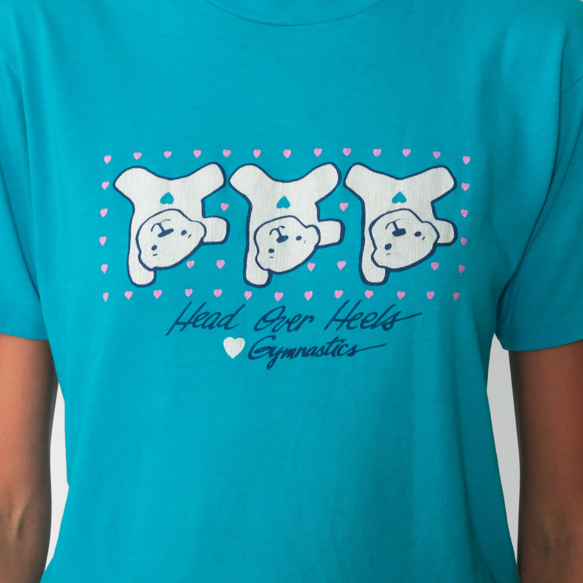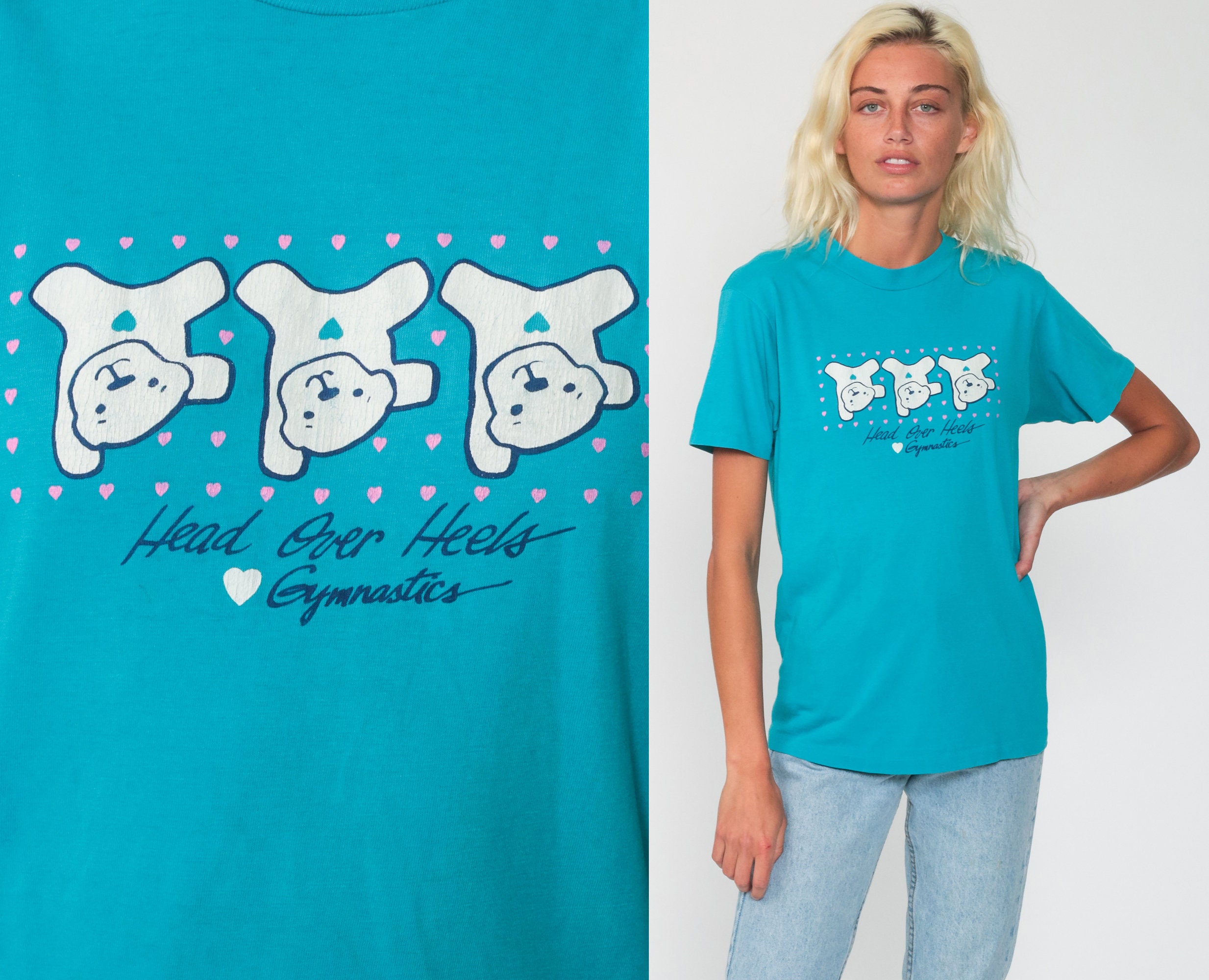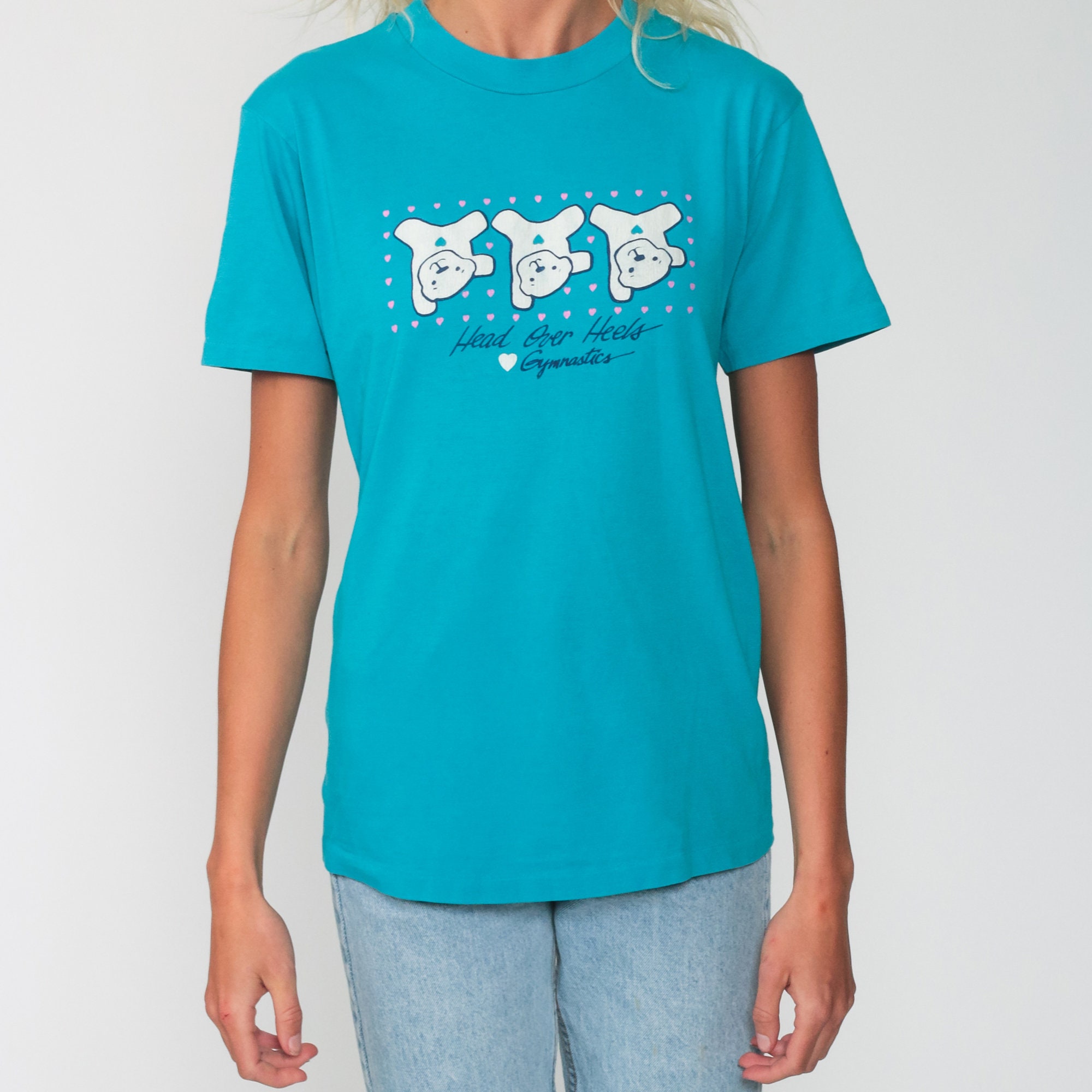 Vintage 80s t shirt with a gymnastic teddy bear print.