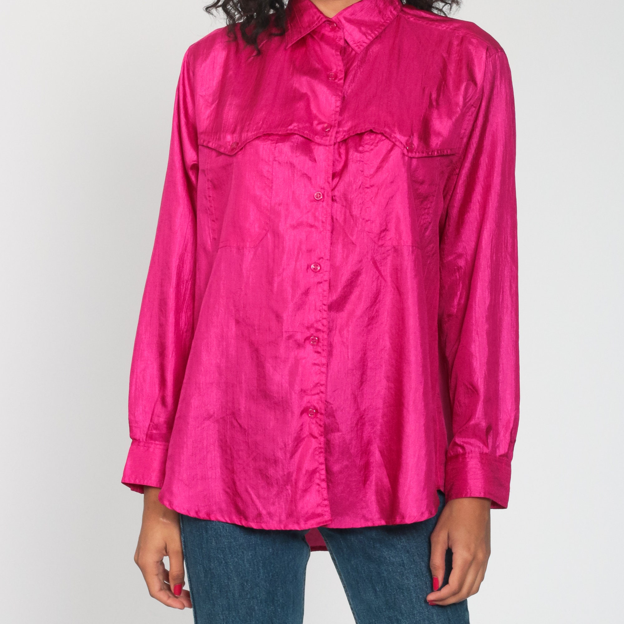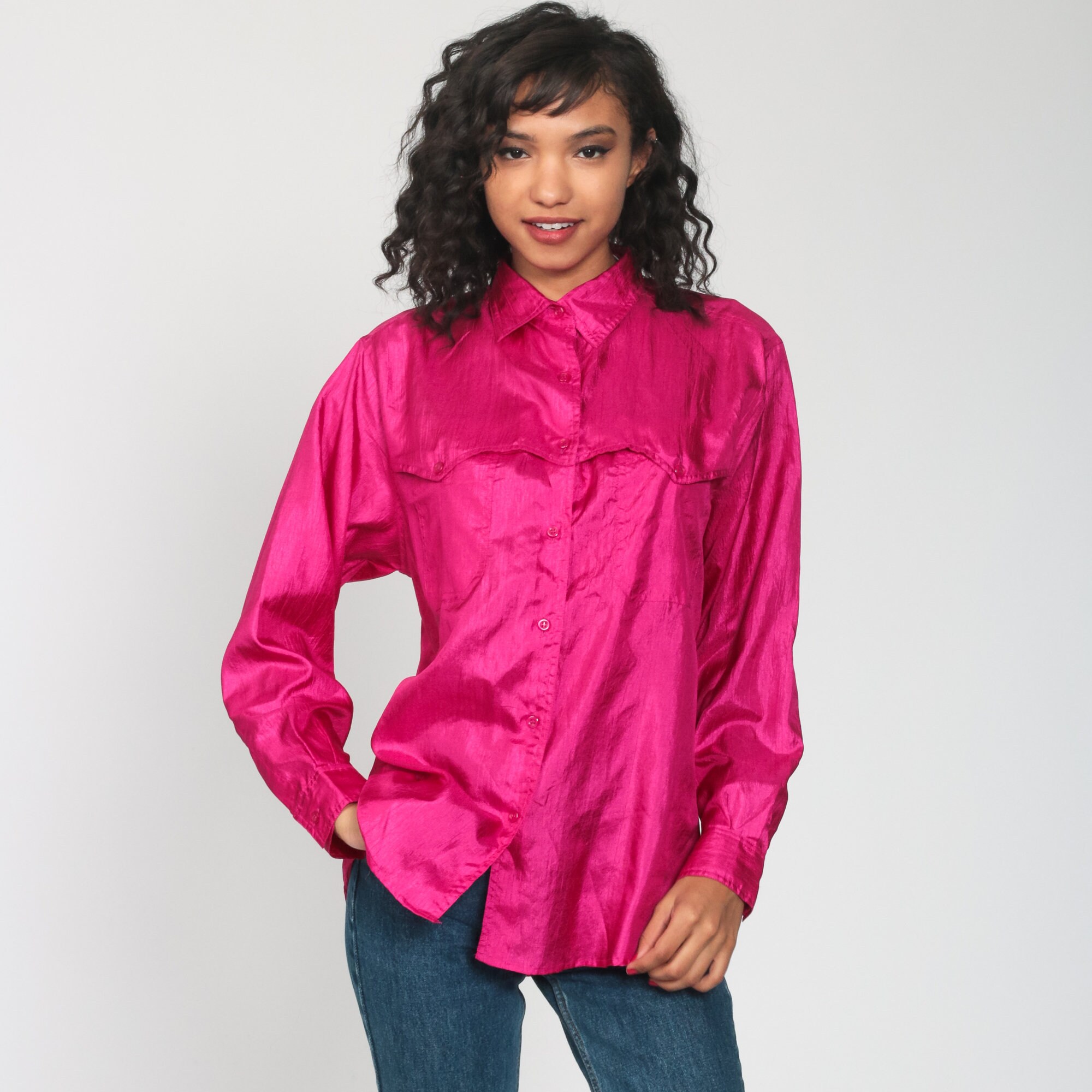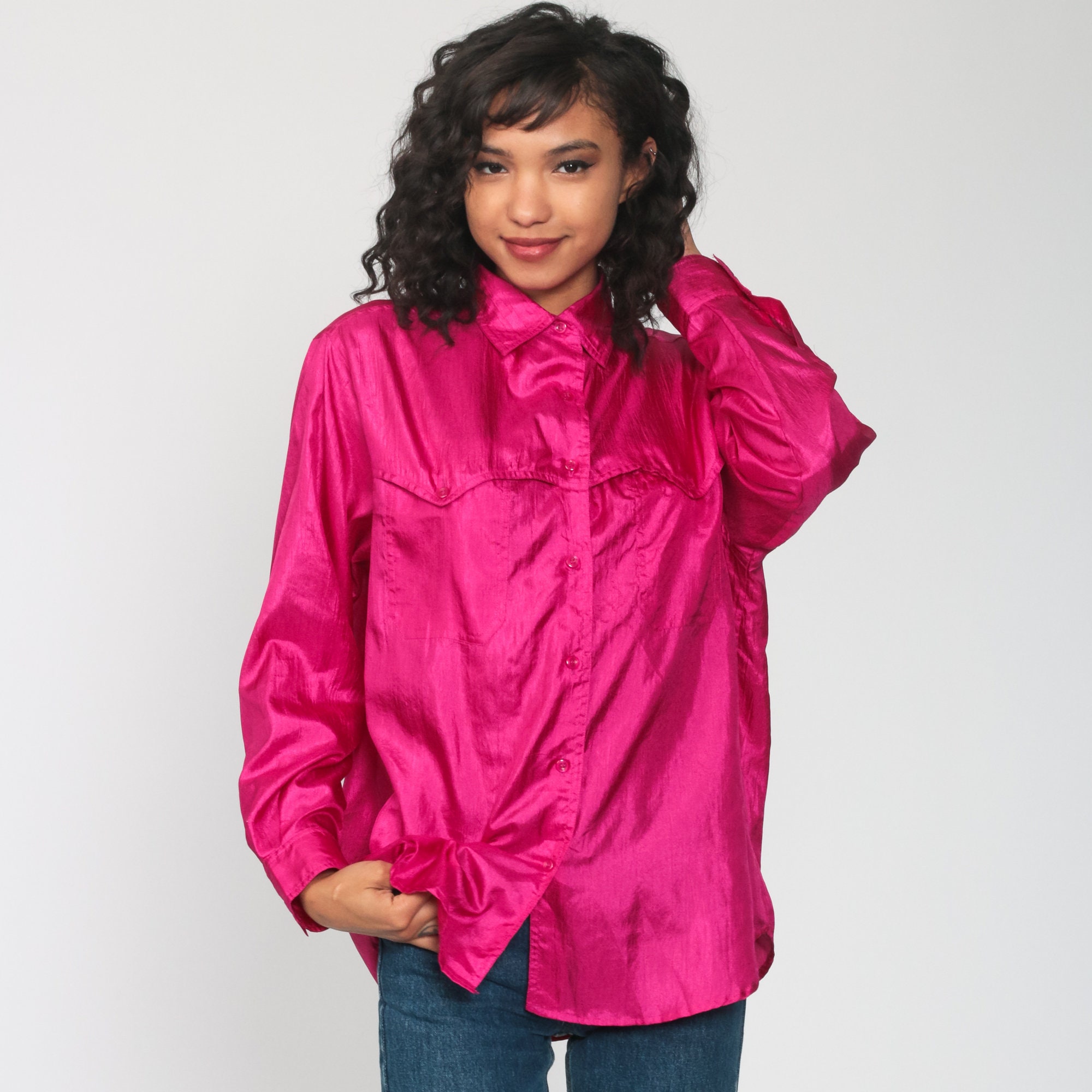 Vintage 90s shirt in shiny pink with buttons up the front.