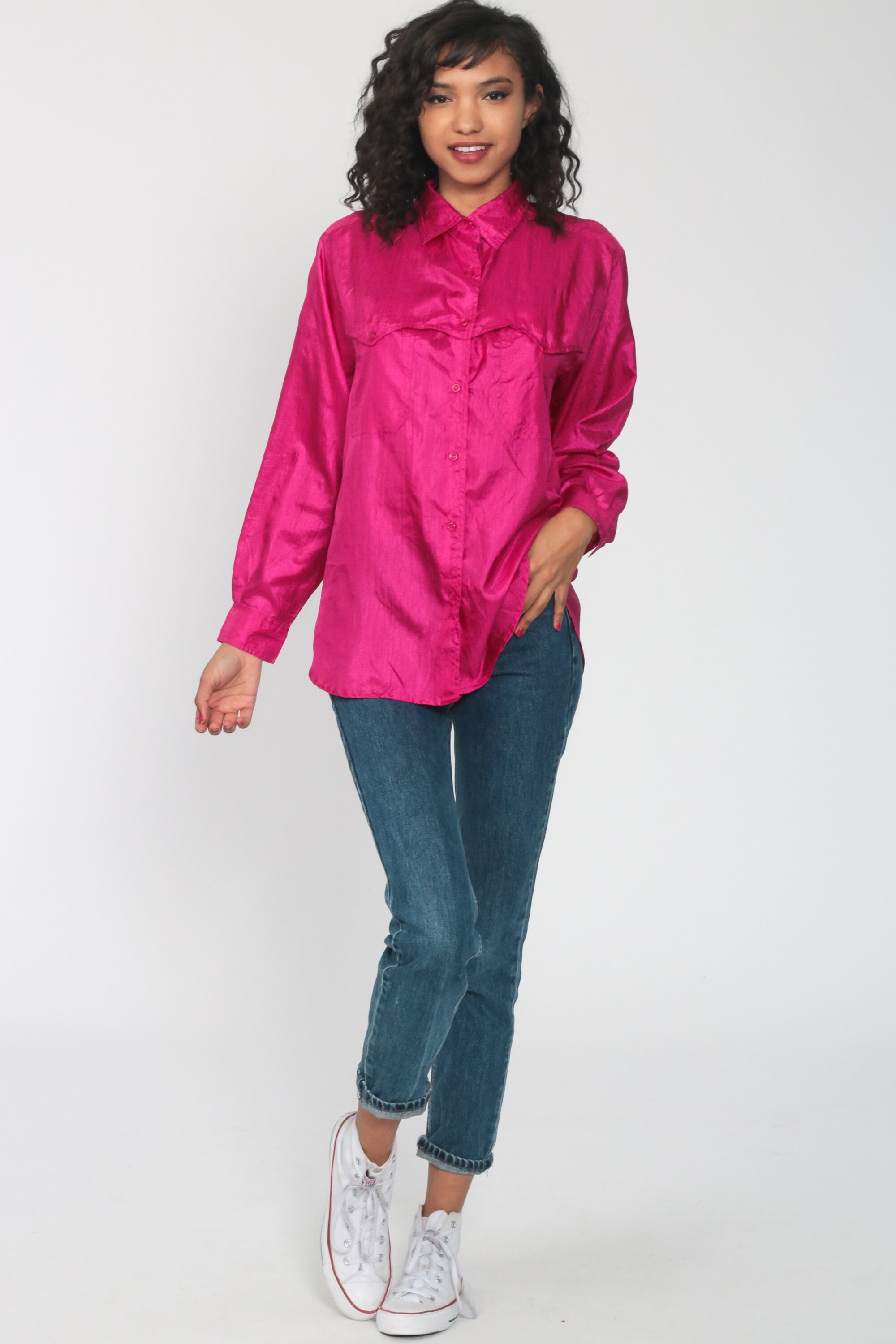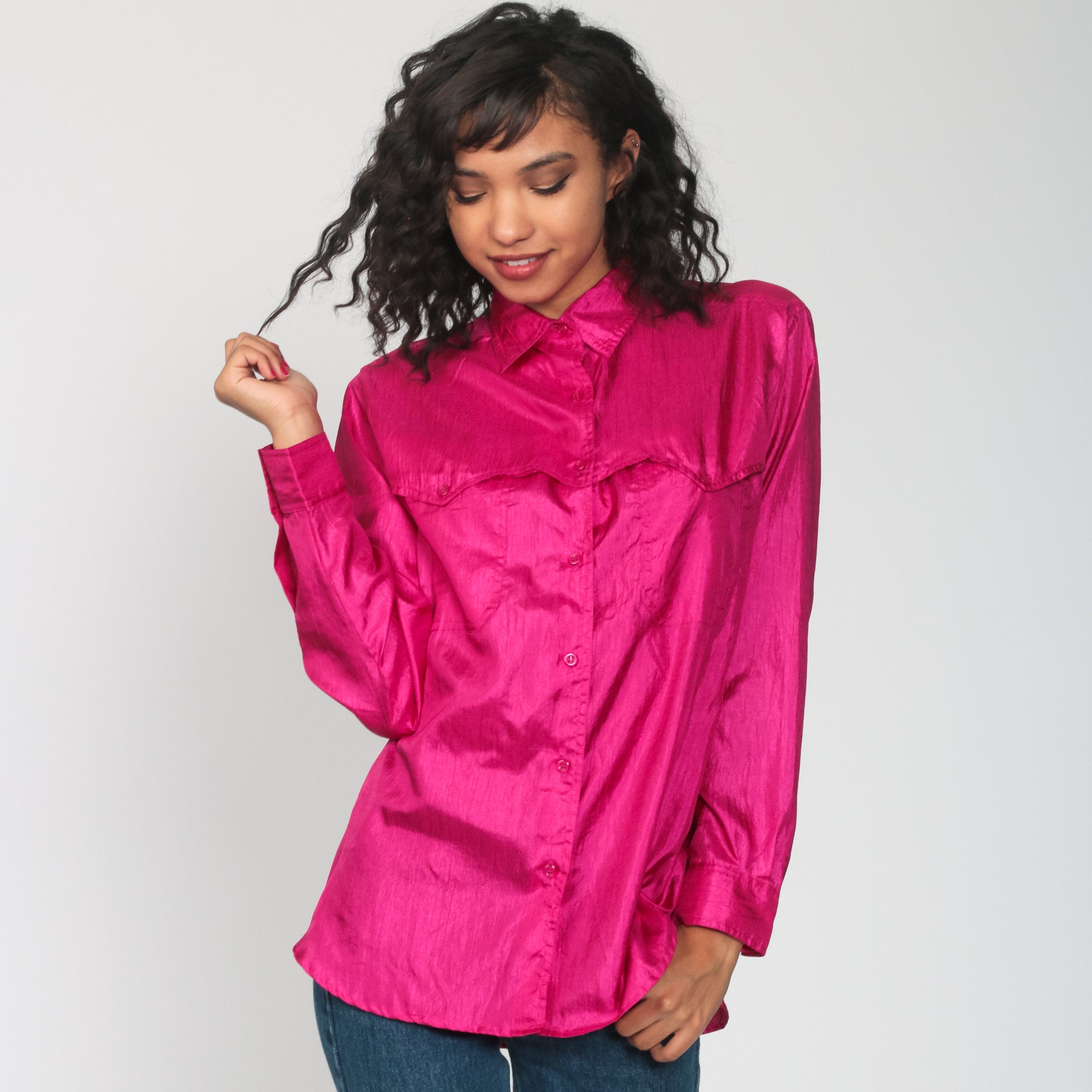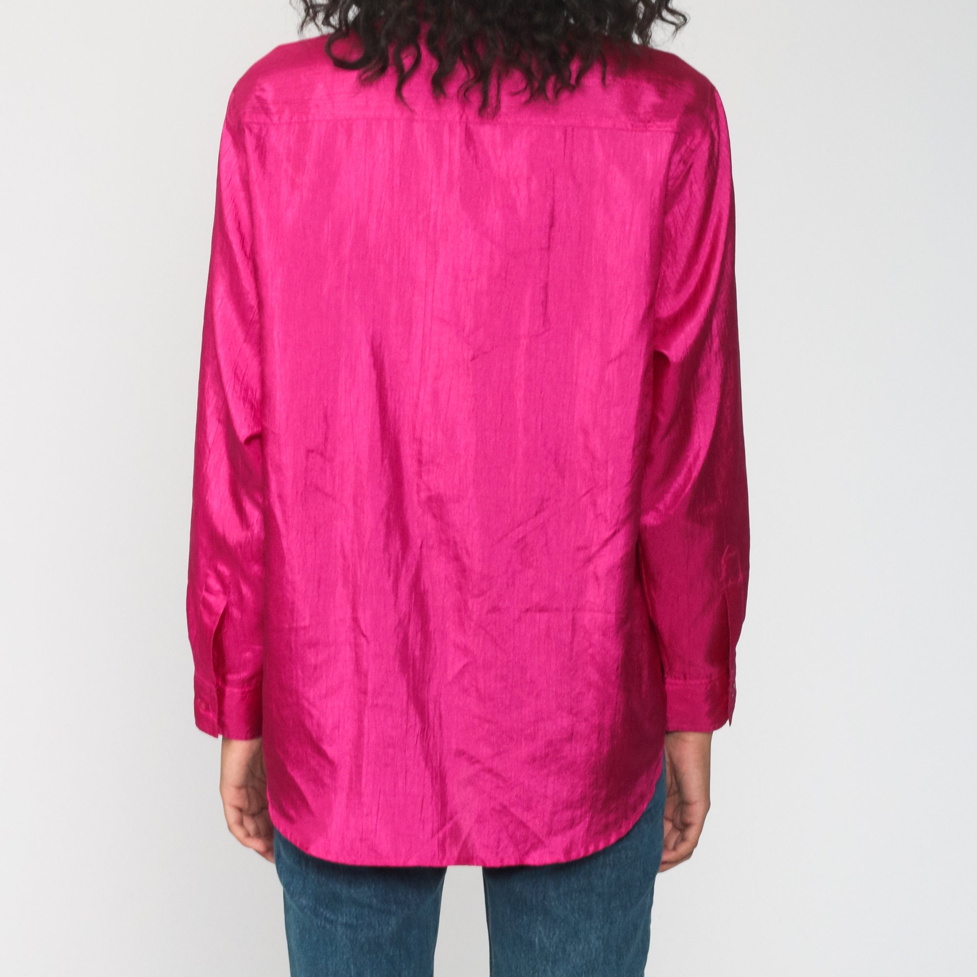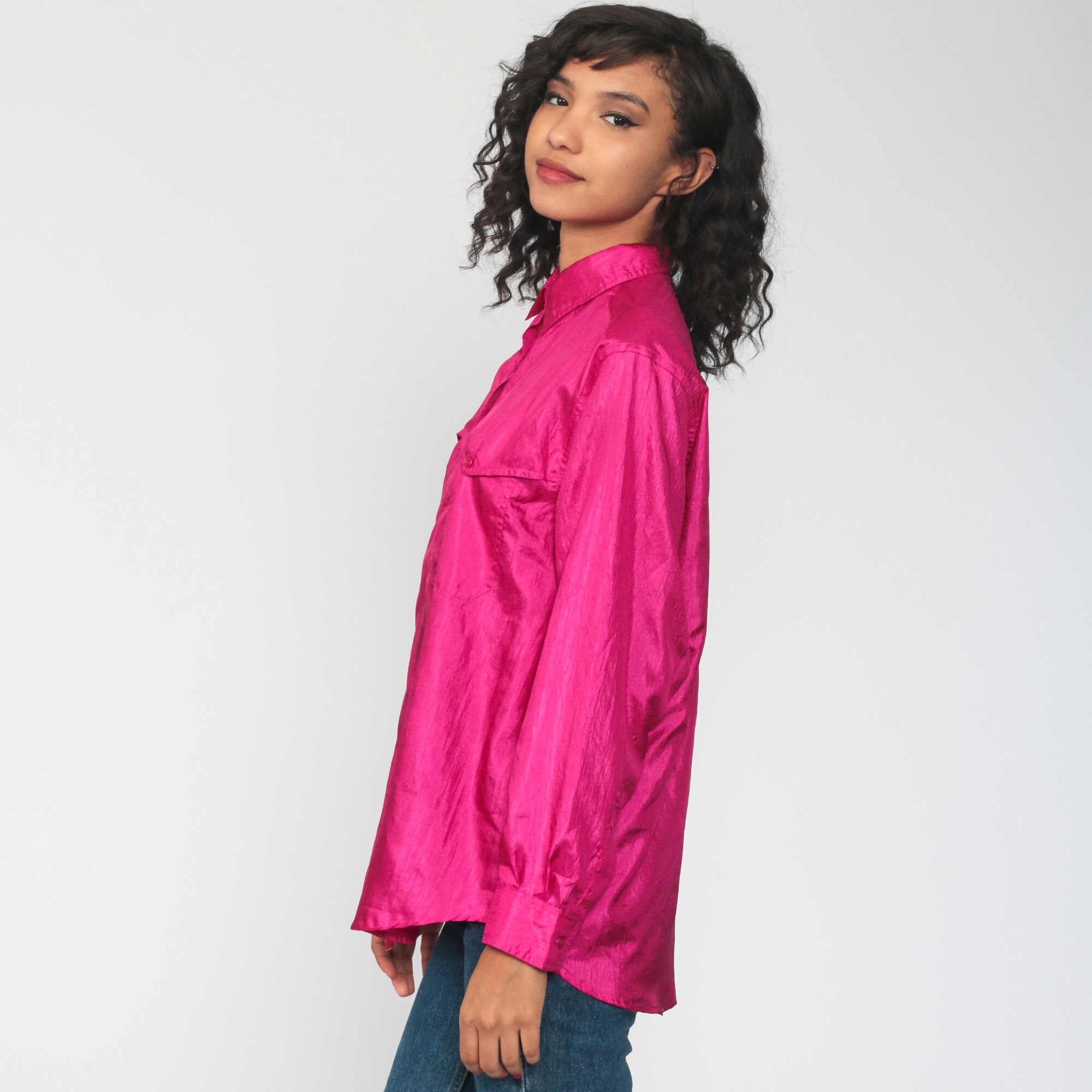 Vintage 90s shirt in shiny pink with buttons up the front.