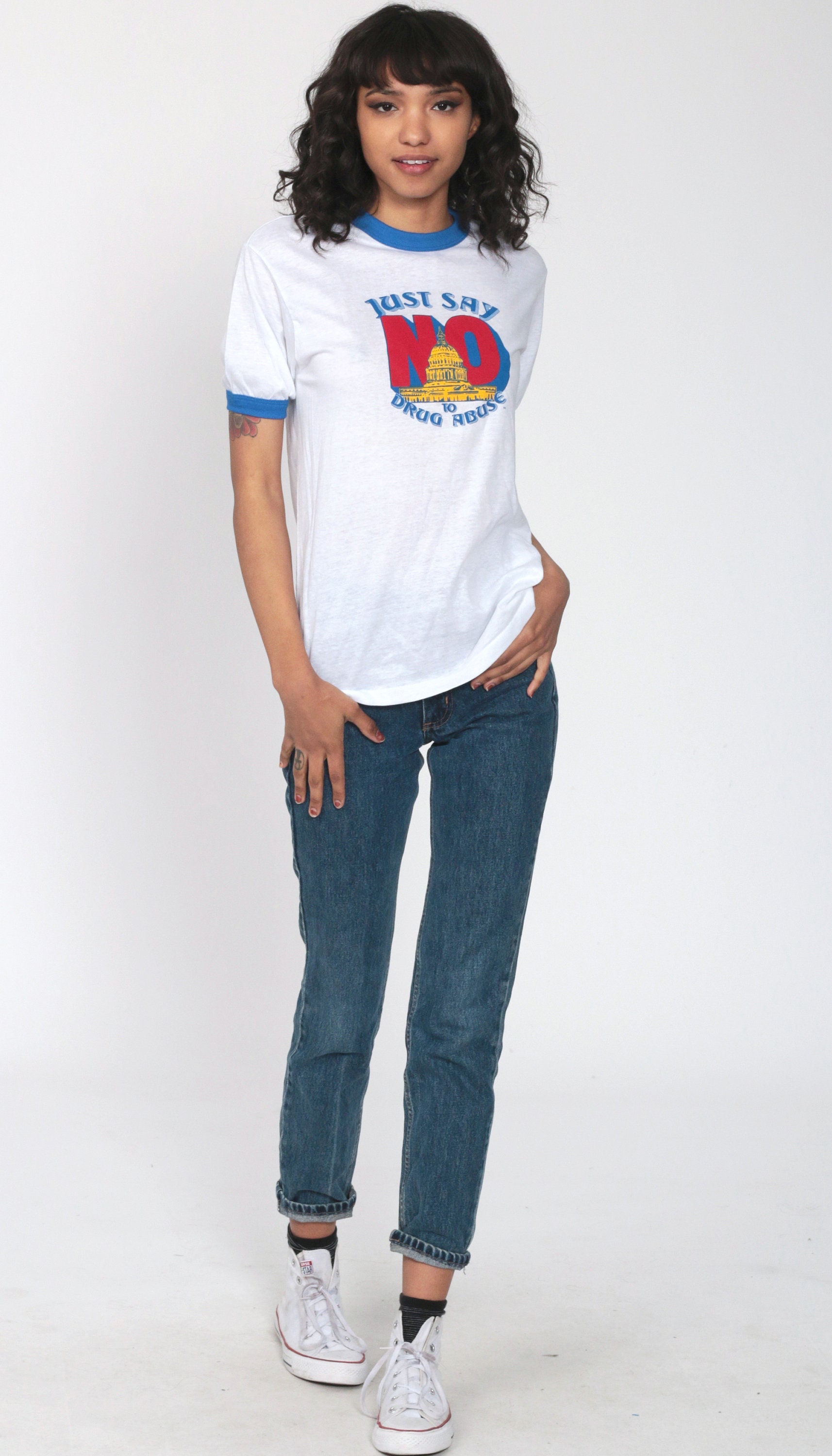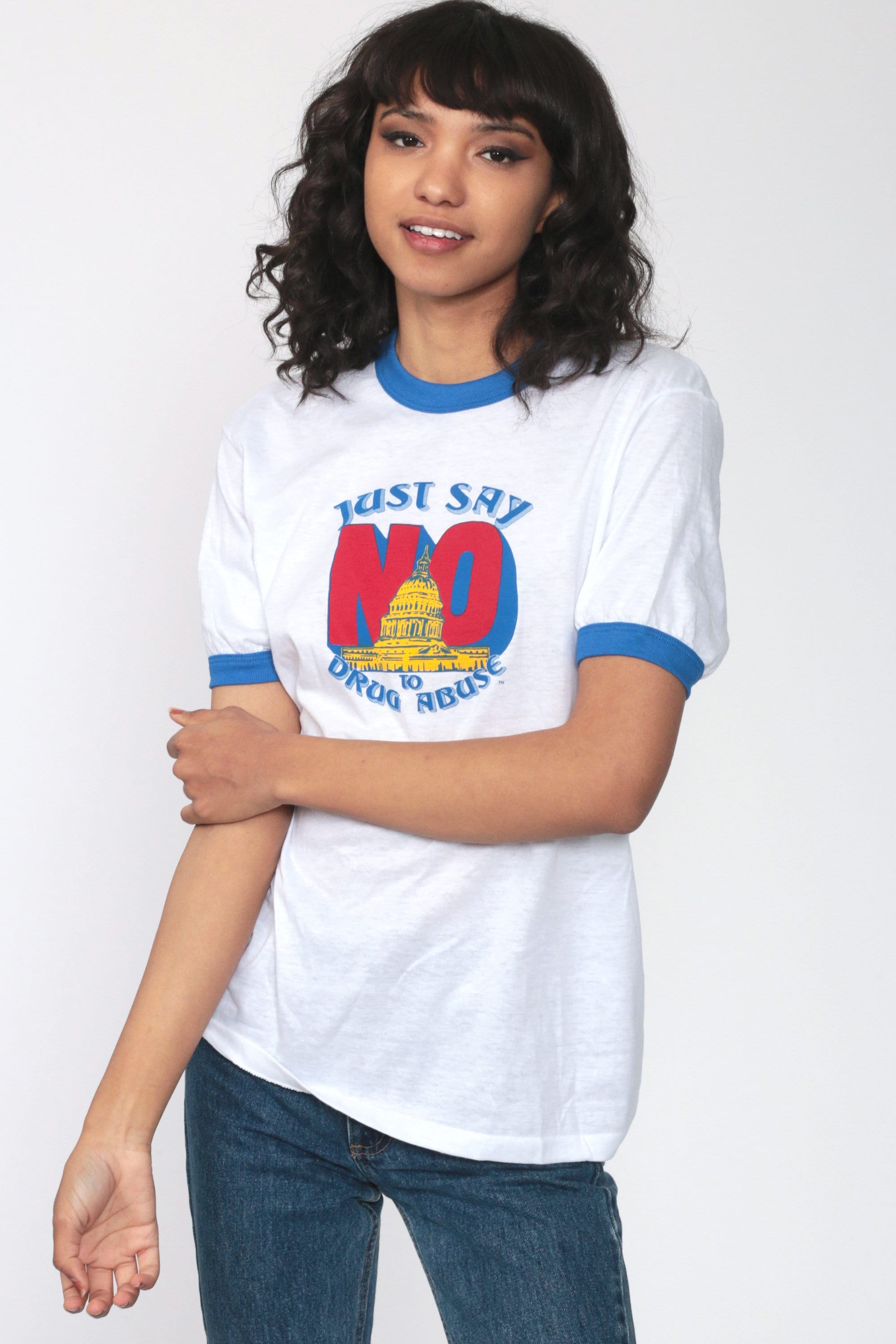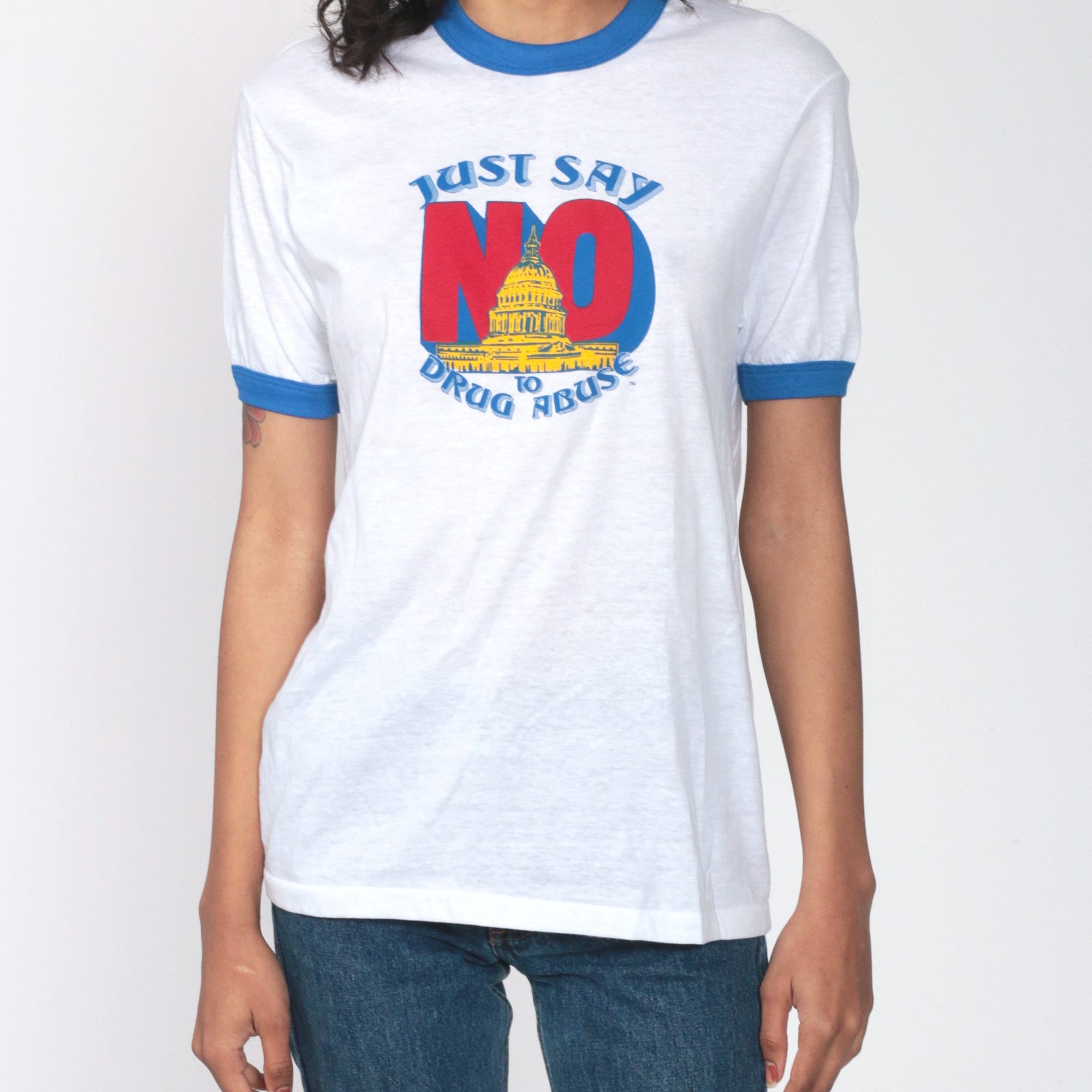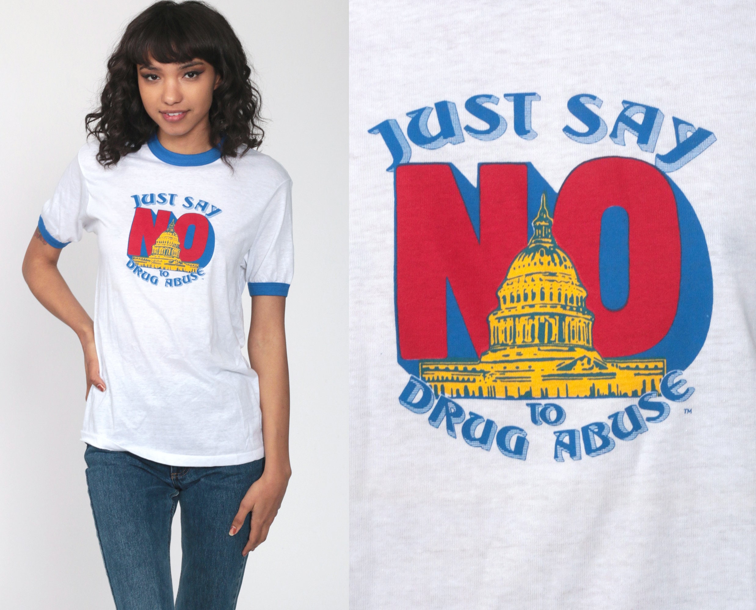 Vintage 80s t shirt with 'Say no to drug abuse' on front. Paper thin burnout. Unisex.