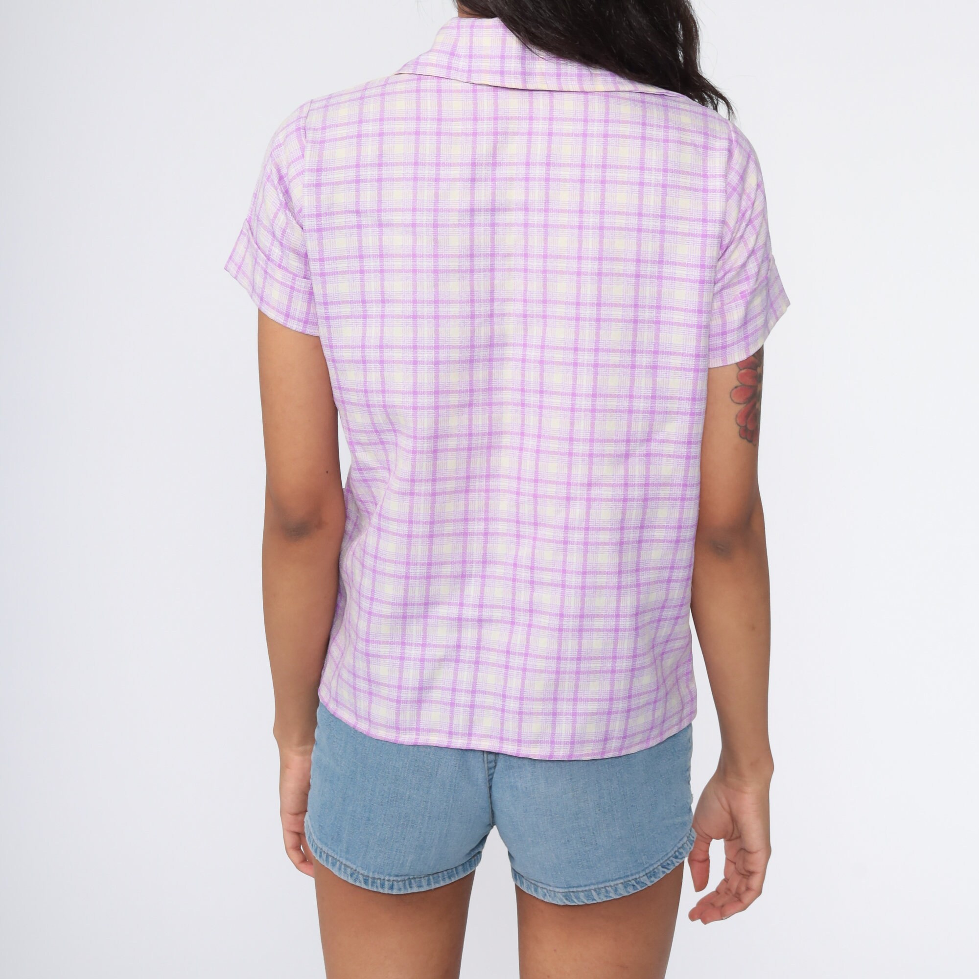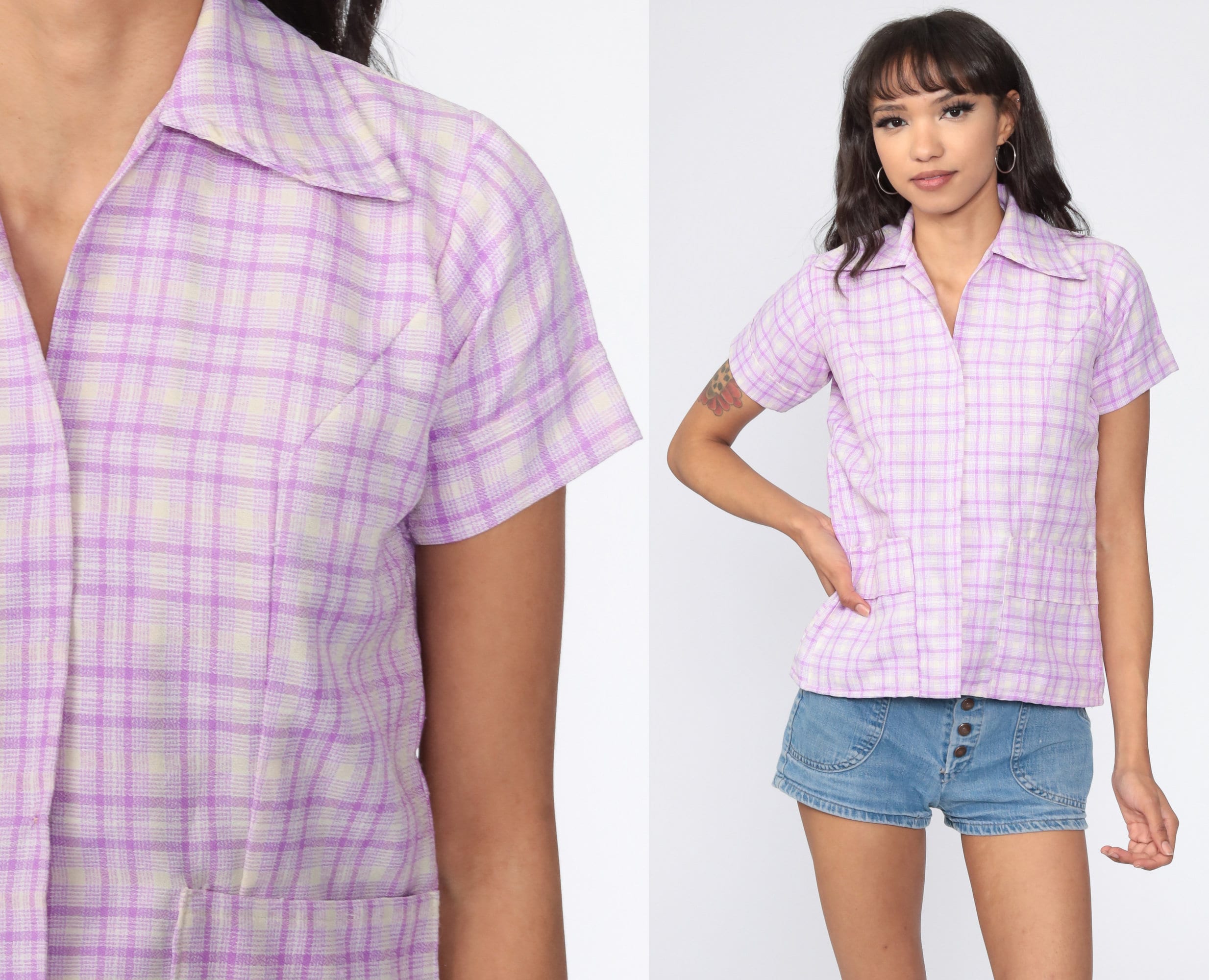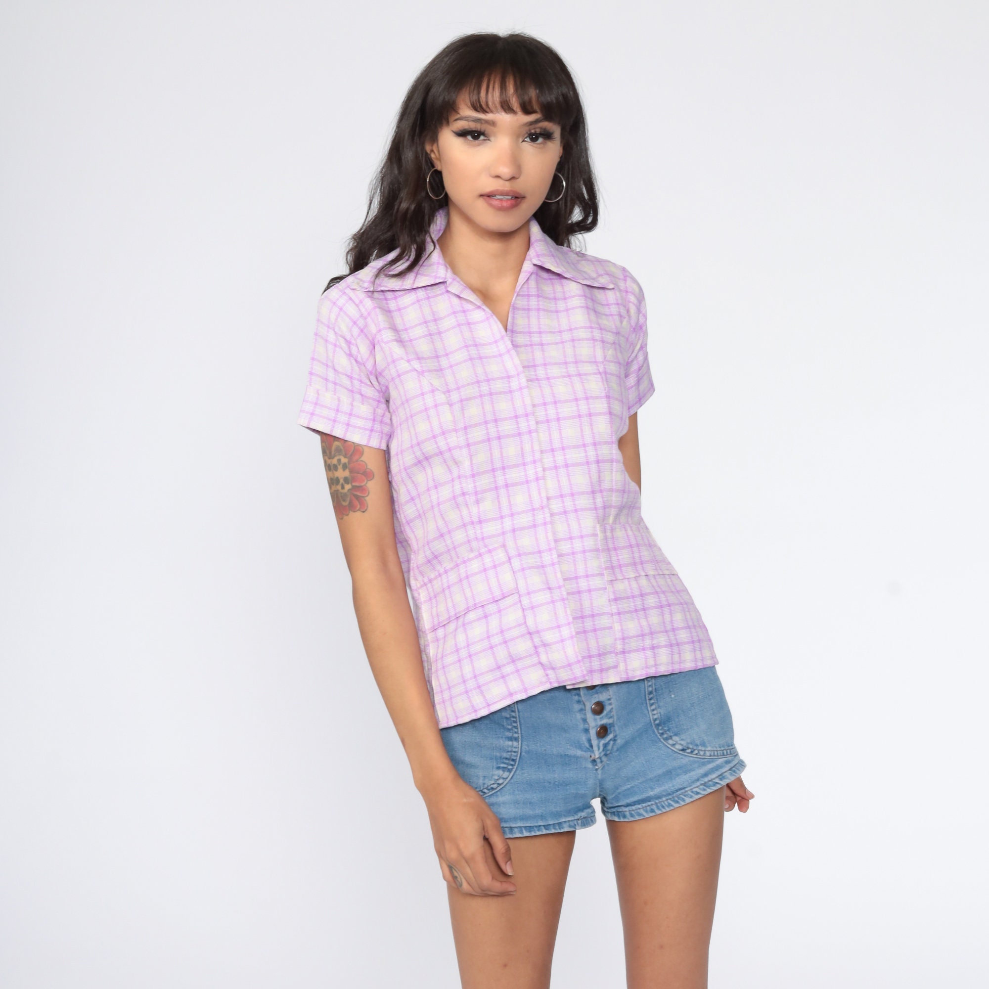 Vintage 70s shirt in plaid with a collar and short sleeves.