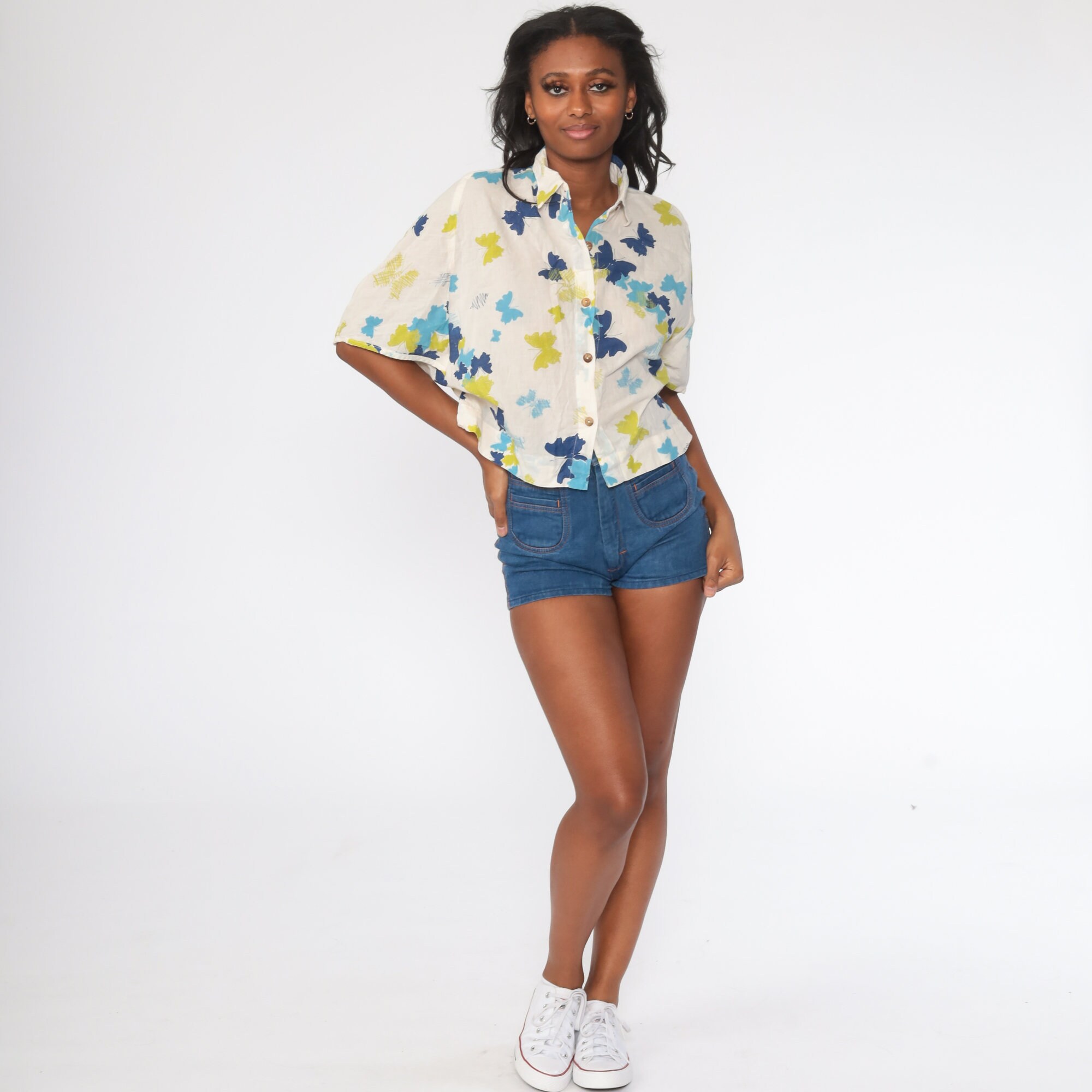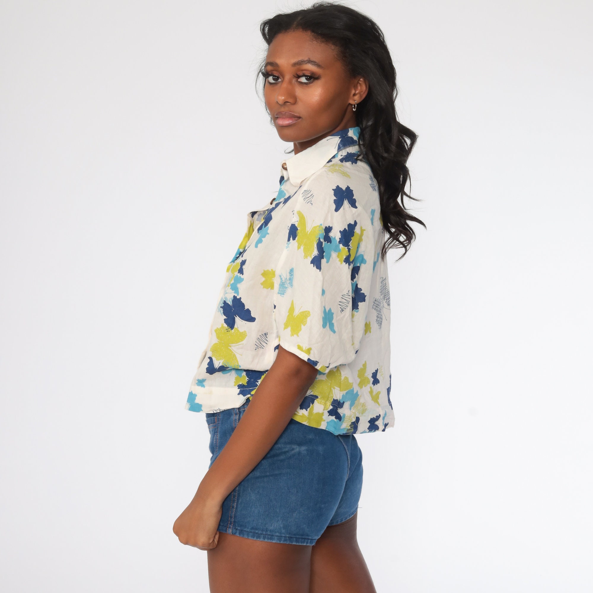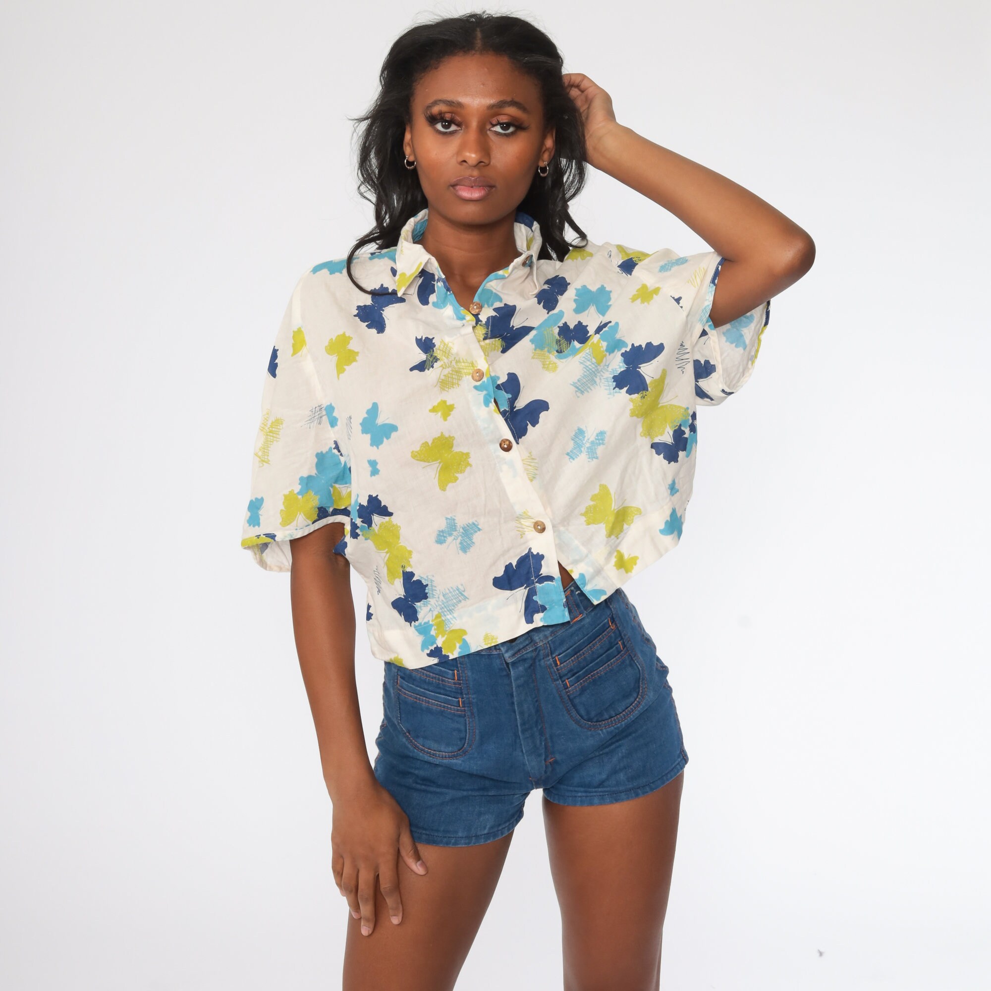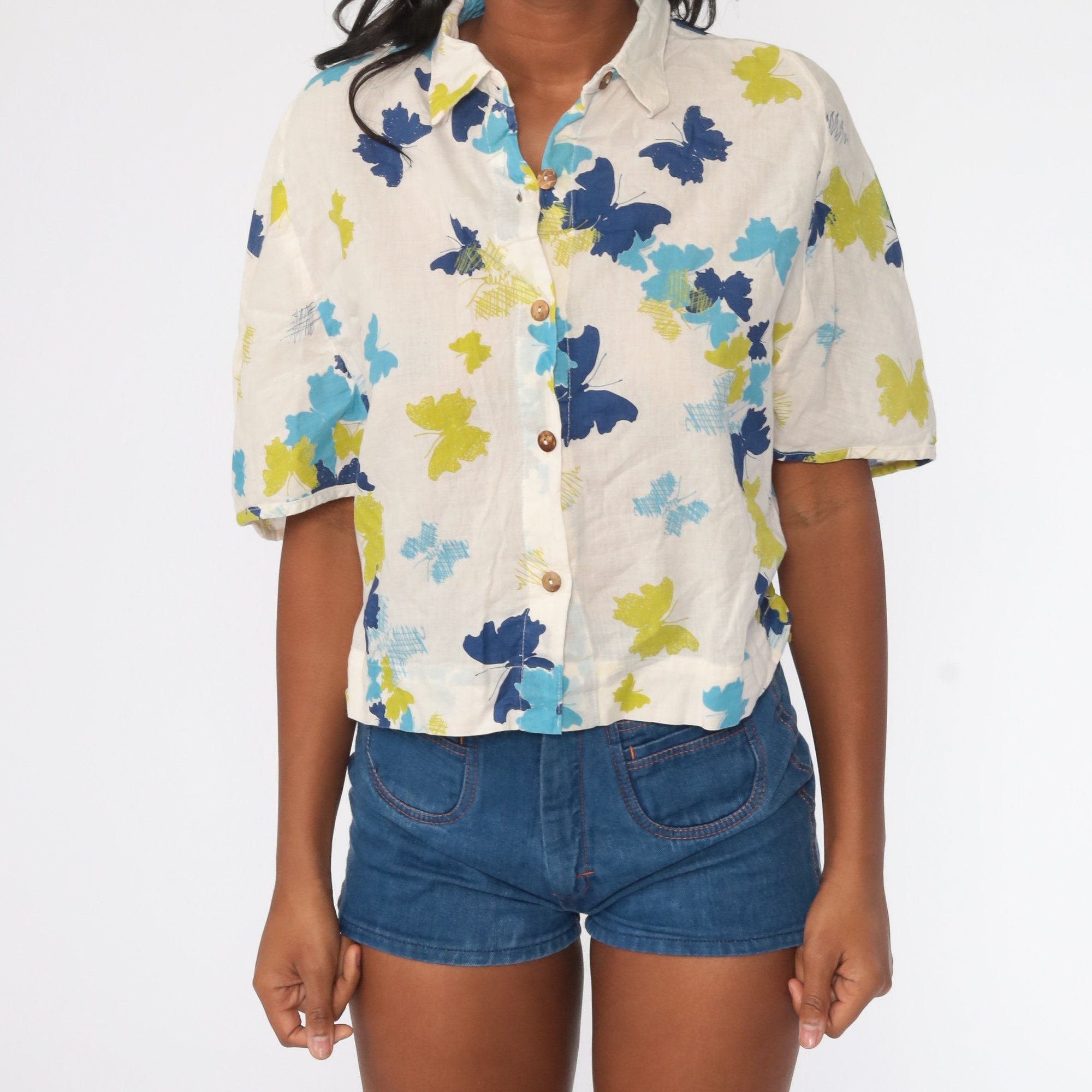 Vintage 00s button up shirt with a butterfly print.