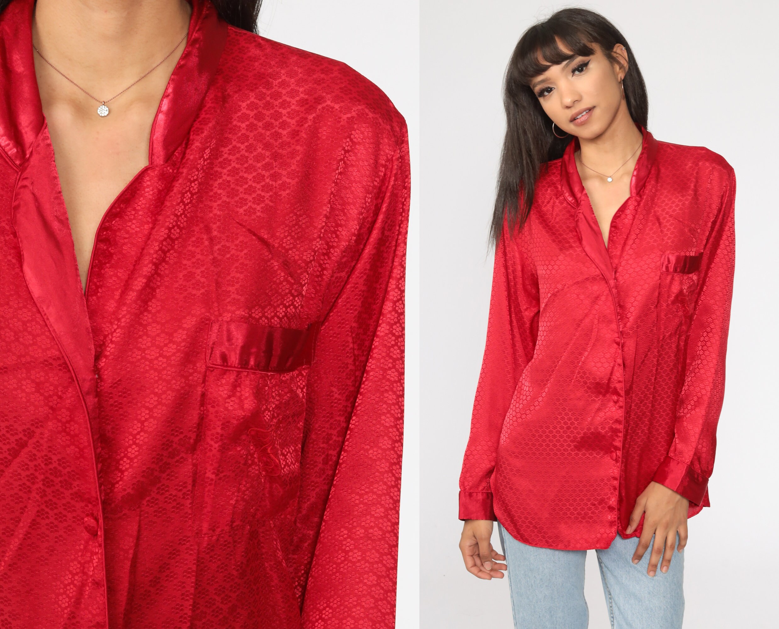 Vintage 90s lingerie pajama top by Victoria's Secret in red satin. Buttons in front.