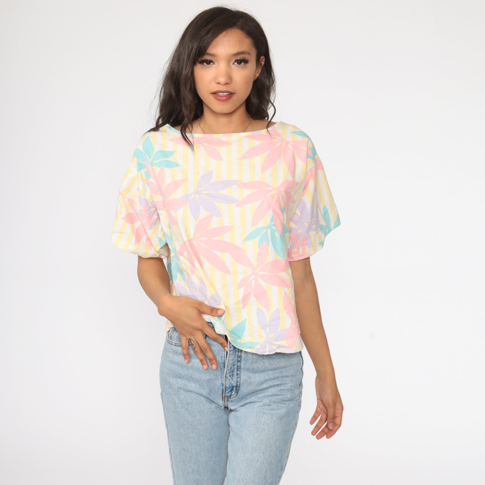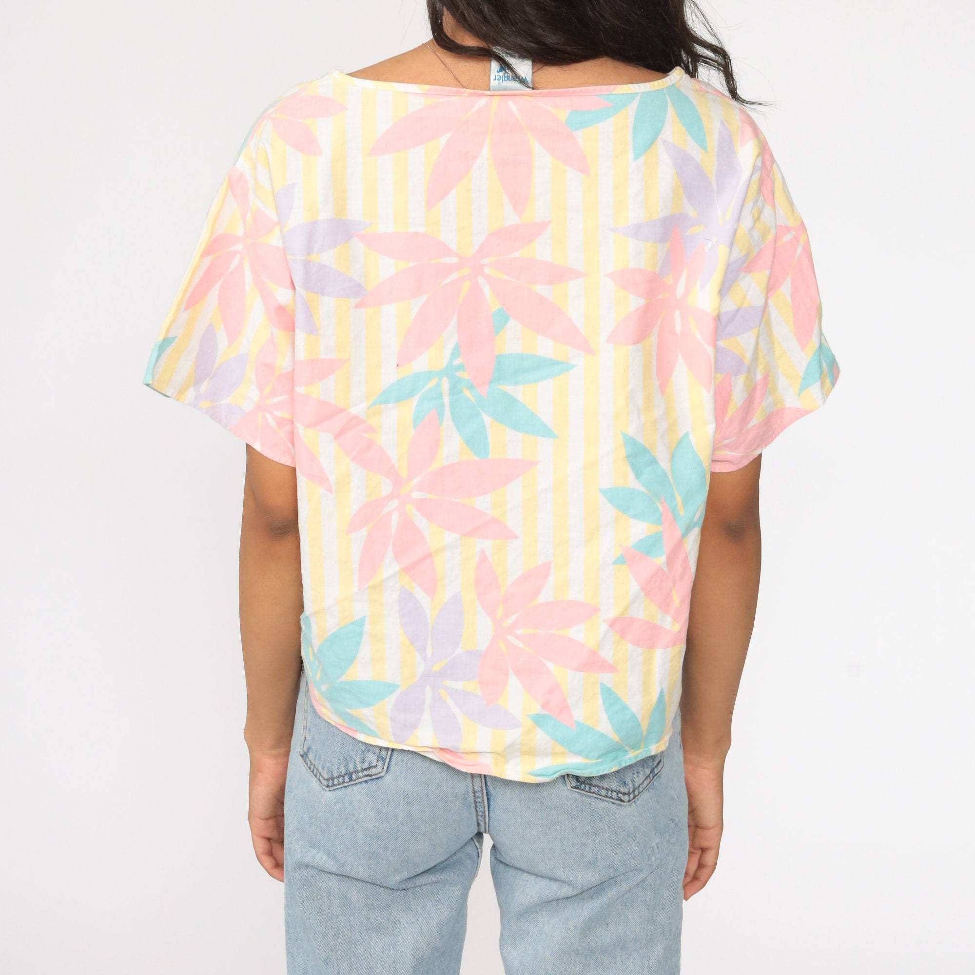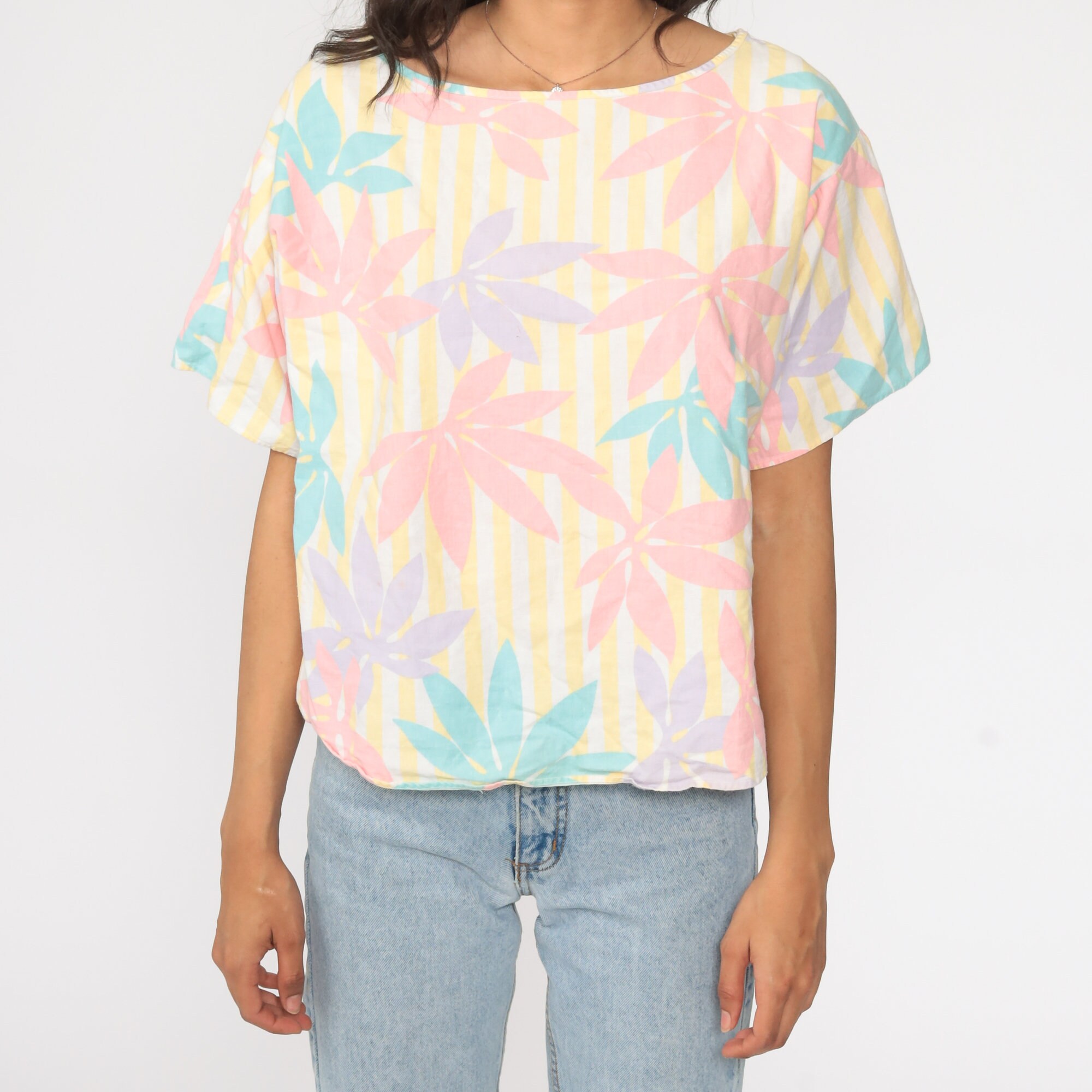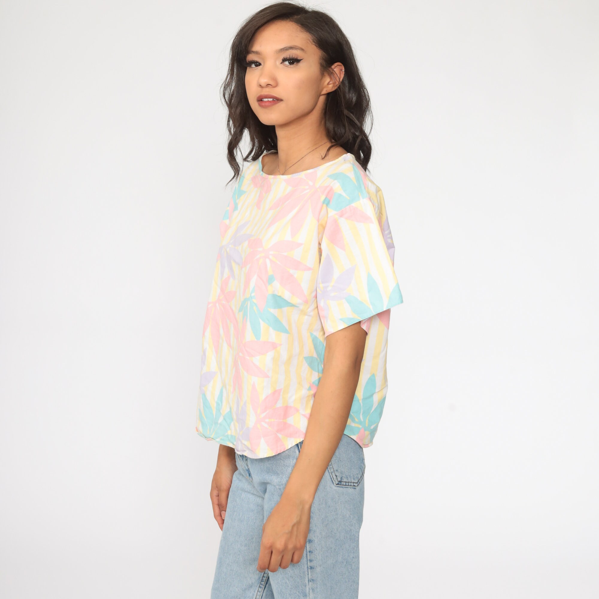 Vintage 80s shirt in a floral print with short sleeves.